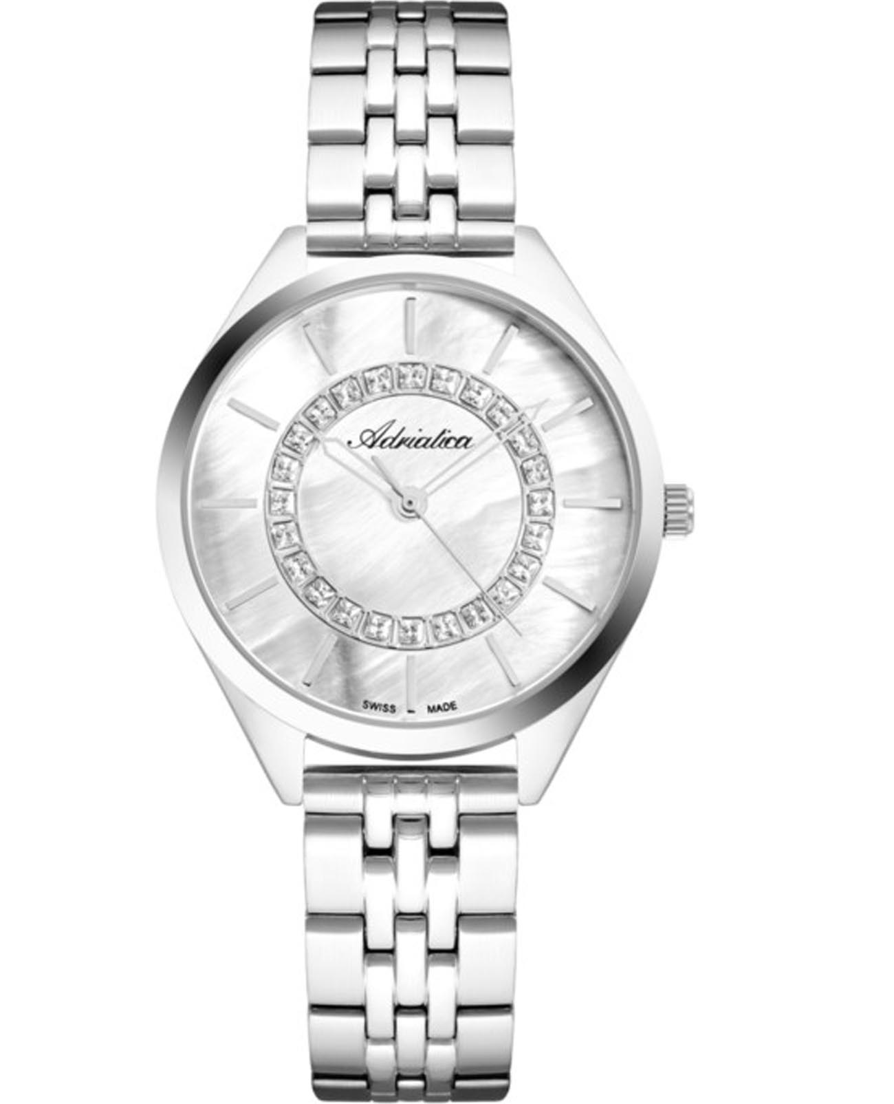 Женские часы с минеральным стекломМинеральное стеклоМинеральное стекло представляет собой искусственно выращенный минерал кварца. Такое стекло отличается особой устойчивостью к повреждениям и царапинам. Уступает по некоторым качествам сапфировому стеклу. Adriatica A3817.511FQ, кварцевый механизм Ronda 783, работающим от батарейки с высокой точностью. Класс водозащиты: 30 метров, позволит защитить корпус от случайных брызг или капель дождя. Корпус часов изготовлен из стали. Стальной браслет на раскладной застёжкеРаскладная застёжкаТакой тип застёжки используется только на браслетах из металла. Она никогда не раскрывается полностью, происходит разделение на 2 и более частей. Раскладывающая застёжка снизит вероятность потери часов к минимуму..