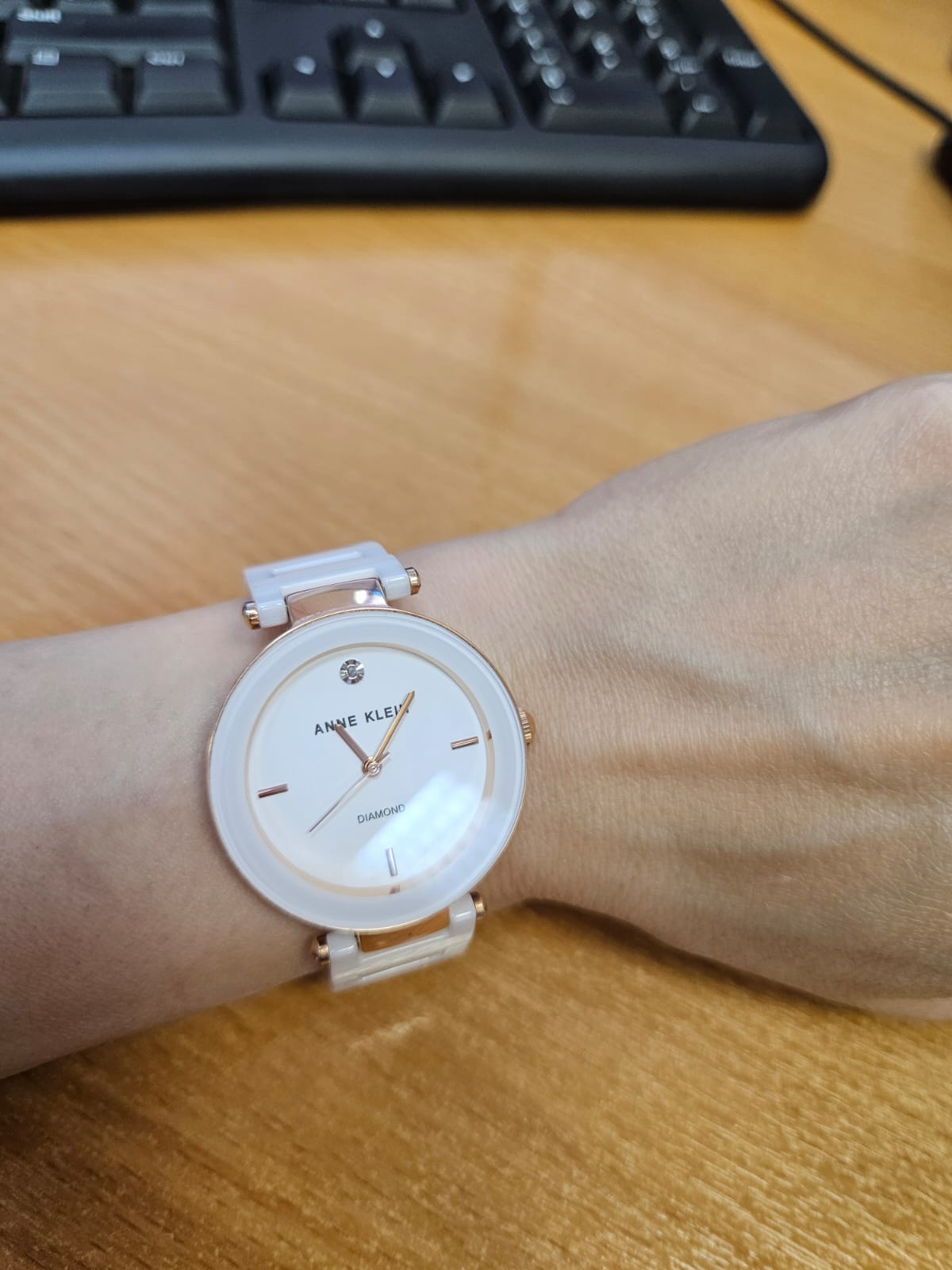 Американские керамические женские часы Anne Klein Diamond 1018RGWT
