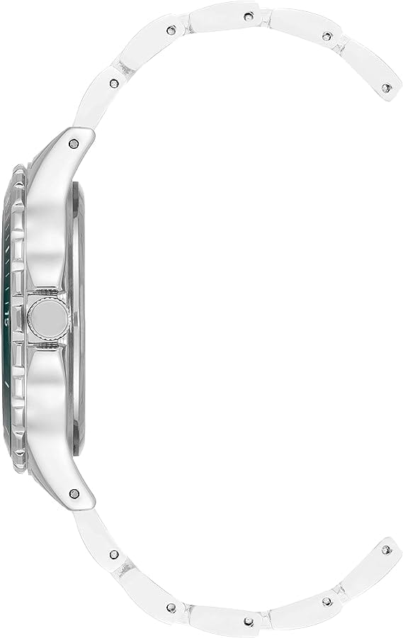 Женские американские наручные часы Anne Klein Metals 3953GNSV, кварцевый механизм с высокой точностью. Класс водозащиты: 30 метров, позволит защитить корпус от случайных брызг или капель дождя. Минеральное стеклоМинеральное стеклоМинеральное стекло представляет собой искусственно выращенный минерал кварца. Такое стекло отличается особой устойчивостью к повреждениям и царапинам. Уступает по некоторым качествам сапфировому стеклу. устойчивое к мелким механическим повреждениям. Корпус часов изготовлен из стали. Стальной браслет на раскладной застёжкеРаскладная застёжкаТакой тип застёжки используется только на браслетах из металла. Она никогда не раскрывается полностью, происходит разделение на 2 и более частей. Раскладывающая застёжка снизит вероятность потери часов к минимуму. и вставками эмали. БезельБезельВнешний ободок, закрепляющий стекло. В спортивных часах так называется поворотное кольцо с делениями на циферблате, выполняет роль таймера – замеряет отрезки времени на шкале. Неподвижный безель – элемент декора. Однонаправленно вращающийся безель на дайверских часах позволяет фиксировать моменты погружения и выныривания на поверхность. с PVD-покрытиемPVDУльтратонкое покрытие наносится в технике вакуумного напыления, сочетает в себе нитрид титана особой прочности со слоем золота или оксида хрома. Несёт в себе декоративную или защитную функцию..