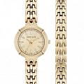 Женские кварцевые часы Anne Klein Box Set 5230GPST представляют собой элегантный аксессуар с круглым корпусом 22 мм из стали с IP-покрытиемIP-покрытиеМетод ионного напыления. Демонстрирует повышенную устойчивость к истиранию, окислению и химическим веществам. Под воздействием высокого давления и температуры около 1500°C молекулы металла надёжно соединяются с частицами корпуса часов. цвета желтого золота. Модель оснащена кварцевым механизмом с точностью хода ±20 секунд в месяц. Циферблат с позолоченными стрелками защищен минеральным стекломМинеральное стеклоМинеральное стекло представляет собой искусственно выращенный минерал кварца. Такое стекло отличается особой устойчивостью к повреждениям и царапинам. Уступает по некоторым качествам сапфировому стеклу., устойчивым к царапинам. Водонепроницаемость 30 метров (3 атм) обеспечивает защиту от брызг и дождя. Изысканный браслет из нержавеющей стали с IP-покрытиемIP-покрытиеМетод ионного напыления. Демонстрирует повышенную устойчивость к истиранию, окислению и химическим веществам. Под воздействием высокого давления и температуры около 1500°C молекулы металла надёжно соединяются с частицами корпуса часов. и с ювелирной застежкой гармонично сочетается с корпусом, создавая целостный образ. Часы отличаются утонченным профилем и комфортной посадкой на запястье. Прилагается дополнительный браслет.