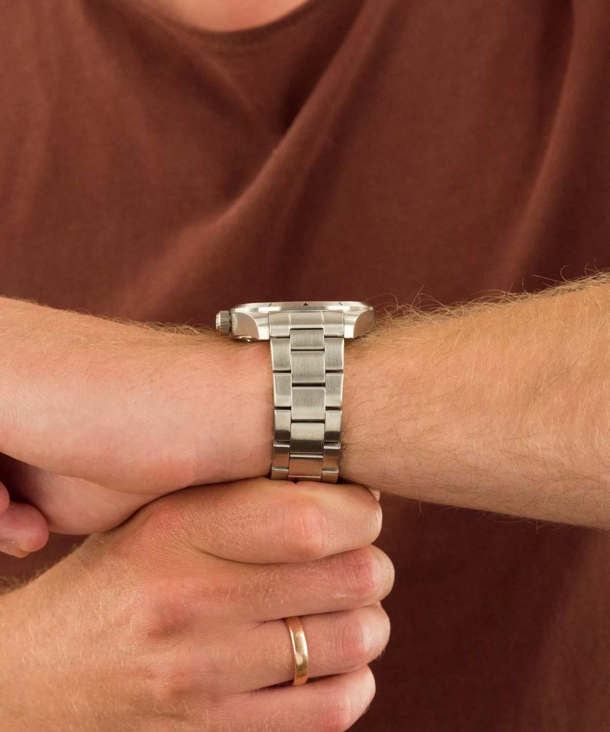 Мужские кварцевые швейцарские часы Atlantic Seaflight 70356.41.65, механизм с высокой точностью. Циферблат часов с сапфировым стекломСапфировое стеклоПрочный и надёжный материал из кристалла сапфира синтетического происхождения, характеризующийся особой твёрдостью и устойчивостью к царапинам и повреждениям., устойчивым к появлению царапин и обладающее высокой прозрачностью. Класс водозащиты: 50 метров, позволит защитить корпус от случайных брызг или капель дождя. Корпус часов изготовлен из нержавеющей стали. Стальной браслет на раскладной застёжкеРаскладная застёжкаТакой тип застёжки используется только на браслетах из металла. Она никогда не раскрывается полностью, происходит разделение на 2 и более частей. Раскладывающая застёжка снизит вероятность потери часов к минимуму.. Окошко даты находится в положении 3 часа.