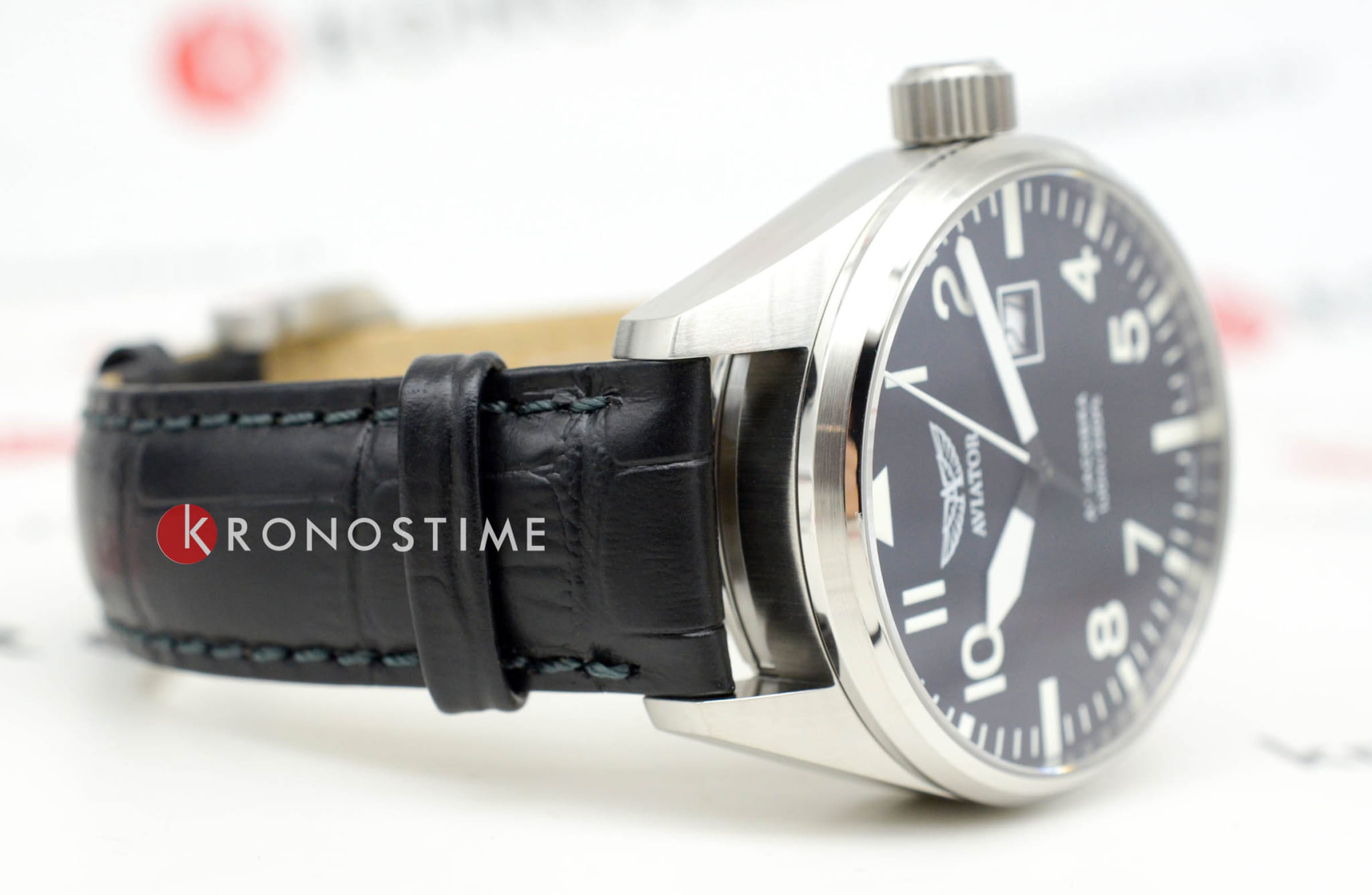 Матовый циферблат с крупными арабскими цифрами, широкими стрелками и контрастной шкалой минут обеспечивает точную и быструю считываемость информации — как и положено настоящим пилотским часам. У отметки «3 часа» — окошко даты. Часовые метки и стрелки покрыты люминесцентным покрытиемЛюминесцентное покрытиеПозволяет считывать показания времени в темноте. Производители наносят на стрелки, часовые индексы, безель или поверхность циферблата светонакопительный состав, дающий холодное свечение. Superluminova, позволяющим легко определять время даже в тёмное время суток.