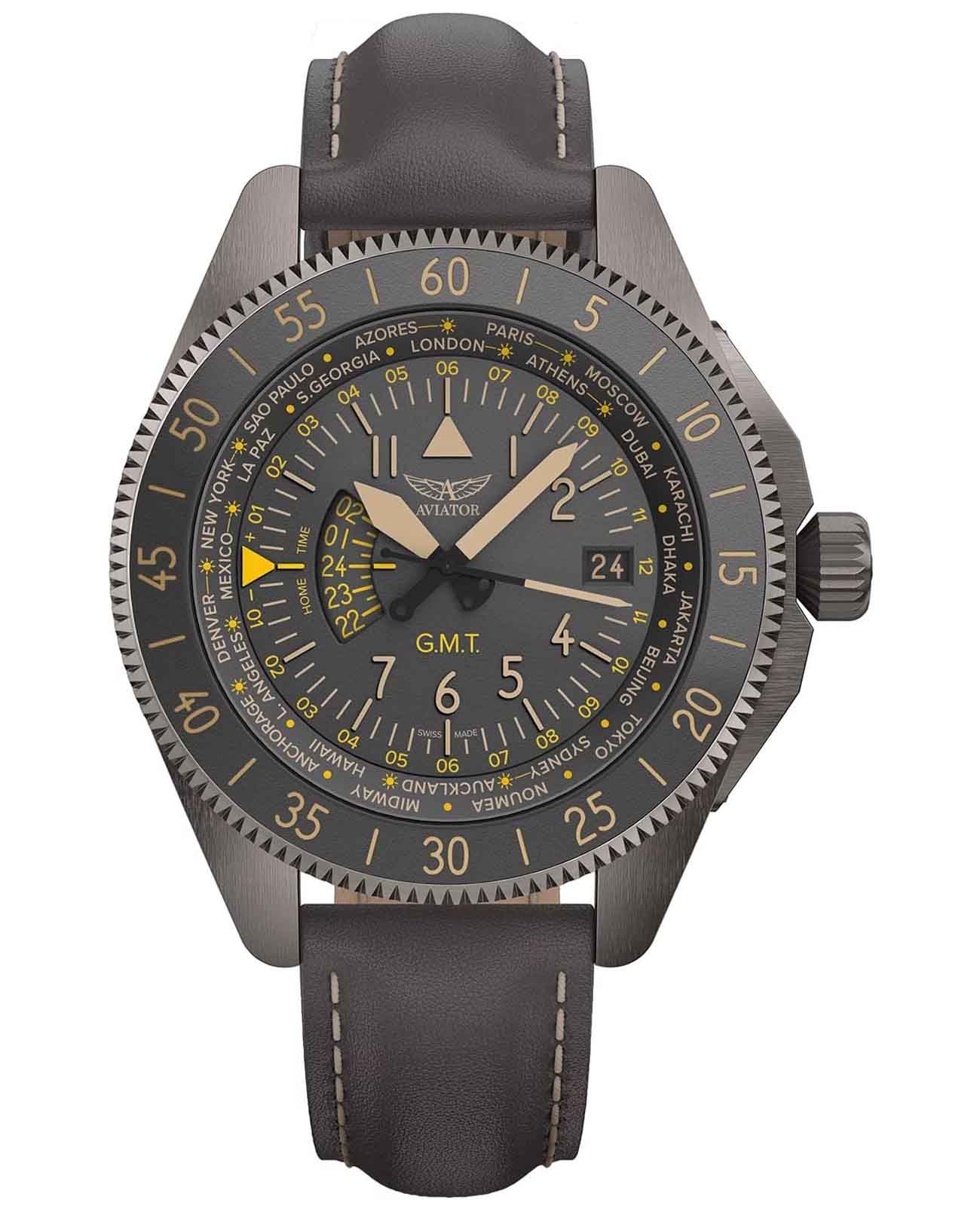 Airacobra GMT — инструментальное сочетание часовой точности, удобной функциональности GMT и авиационной эстетики, предназначенное для тех, кто ценит практичность и стиль в равной мере.