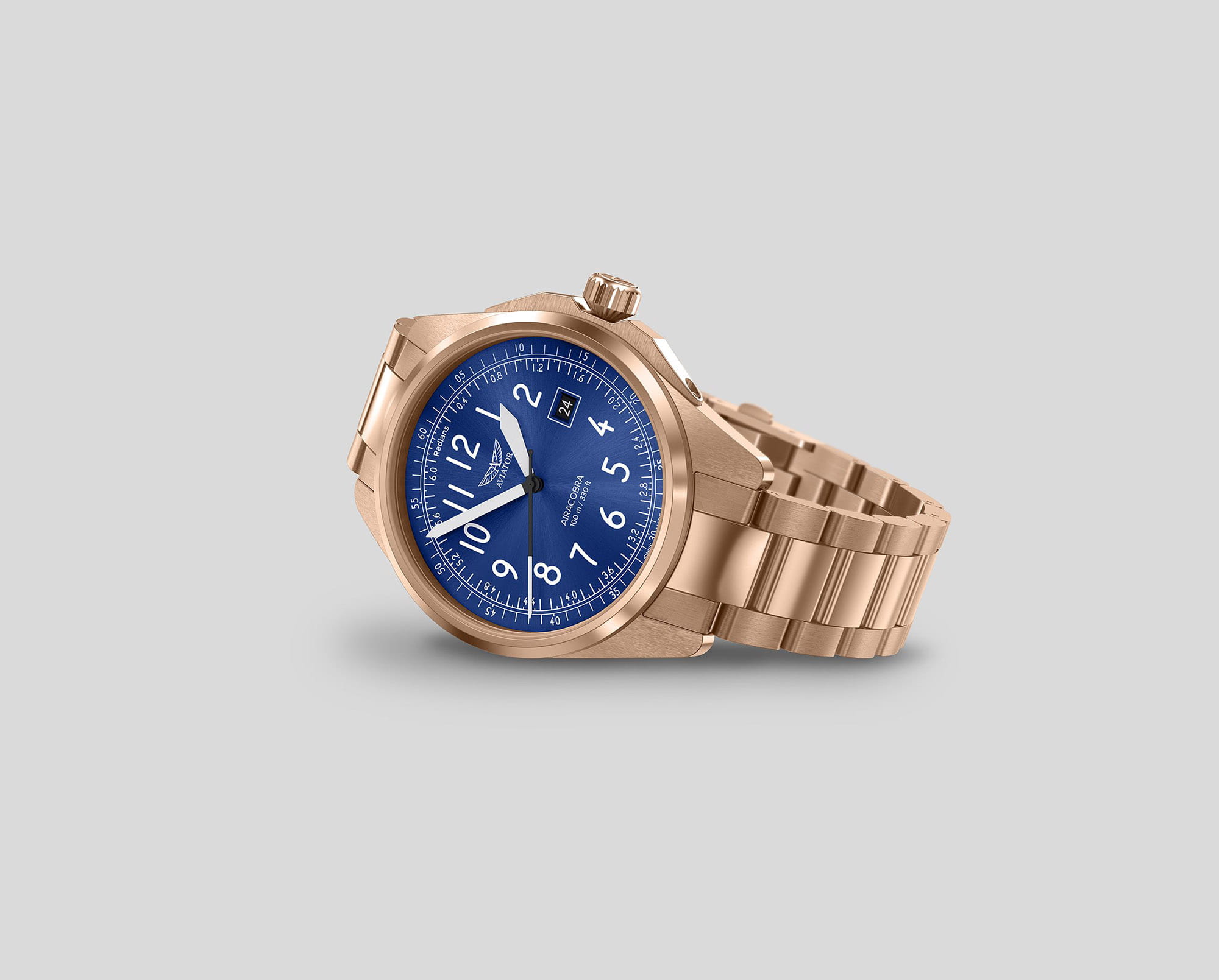 Aviator Airacobra 43 Type B V.1.38.2.325.5 — надёжные швейцарские пилотские часы с насыщенным функционалом и строгим авиационным дизайном. Корпус диаметром 42,8 мм выполнен из нержавеющей стали 316L с PVD-покрытиемPVDУльтратонкое покрытие наносится в технике вакуумного напыления, сочетает в себе нитрид титана особой прочности со слоем золота или оксида хрома. Несёт в себе декоративную или защитную функцию.. Циферблат имеет крупные арабские цифры и жёсткий контраст, соответствующий классическим пилотским образцам. Стрелки и метки покрыты люминесцентным покрытиемЛюминесцентное покрытиеПозволяет считывать показания времени в темноте. Производители наносят на стрелки, часовые индексы, безель или поверхность циферблата светонакопительный состав, дающий холодное свечение. Superluminova — это обеспечивает отличную читаемость в любых условиях. Окошко даты расположено у отметки «3 часа». На борту установлен швейцарский кварцевый механизм, способный с высокой точностью отображать время, дату. В механизме 4 камня. Изысканный циферблат защищён стойким сапфировым стекломСапфировое стеклоПрочный и надёжный материал из кристалла сапфира синтетического происхождения, характеризующийся особой твёрдостью и устойчивостью к царапинам и повреждениям. с антибликовым покрытиемАнтибликовое покрытиеСлой оксида металла в 0,13-0,3 микрон, благодаря которому стекло часов не бликует и не отражает свет. Антибликовое покрытие уменьшает отражение света в 10 раз, обеспечивая отличную читаемость показателей циферблата., завинчивающаяся заводная головка и задняя крышка обеспечивают уровень водозащиты до 100 метров. Стальной браслет с PVD-покрытиемPVDУльтратонкое покрытие наносится в технике вакуумного напыления, сочетает в себе нитрид титана особой прочности со слоем золота или оксида хрома. Несёт в себе декоративную или защитную функцию. с раскладной застёжкойРаскладная застёжкаТакой тип застёжки используется только на браслетах из металла. Она никогда не раскрывается полностью, происходит разделение на 2 и более частей. Раскладывающая застёжка снизит вероятность потери часов к минимуму. обеспечивает удобство и надёжную фиксацию. Airacobra 43 Type B — инструментальные пилотские часы для тех, кто ценит надёжность, точность и удобную функциональность второго часового пояса в эстетике классических авиационных хронометров. Лимитированная серия.