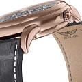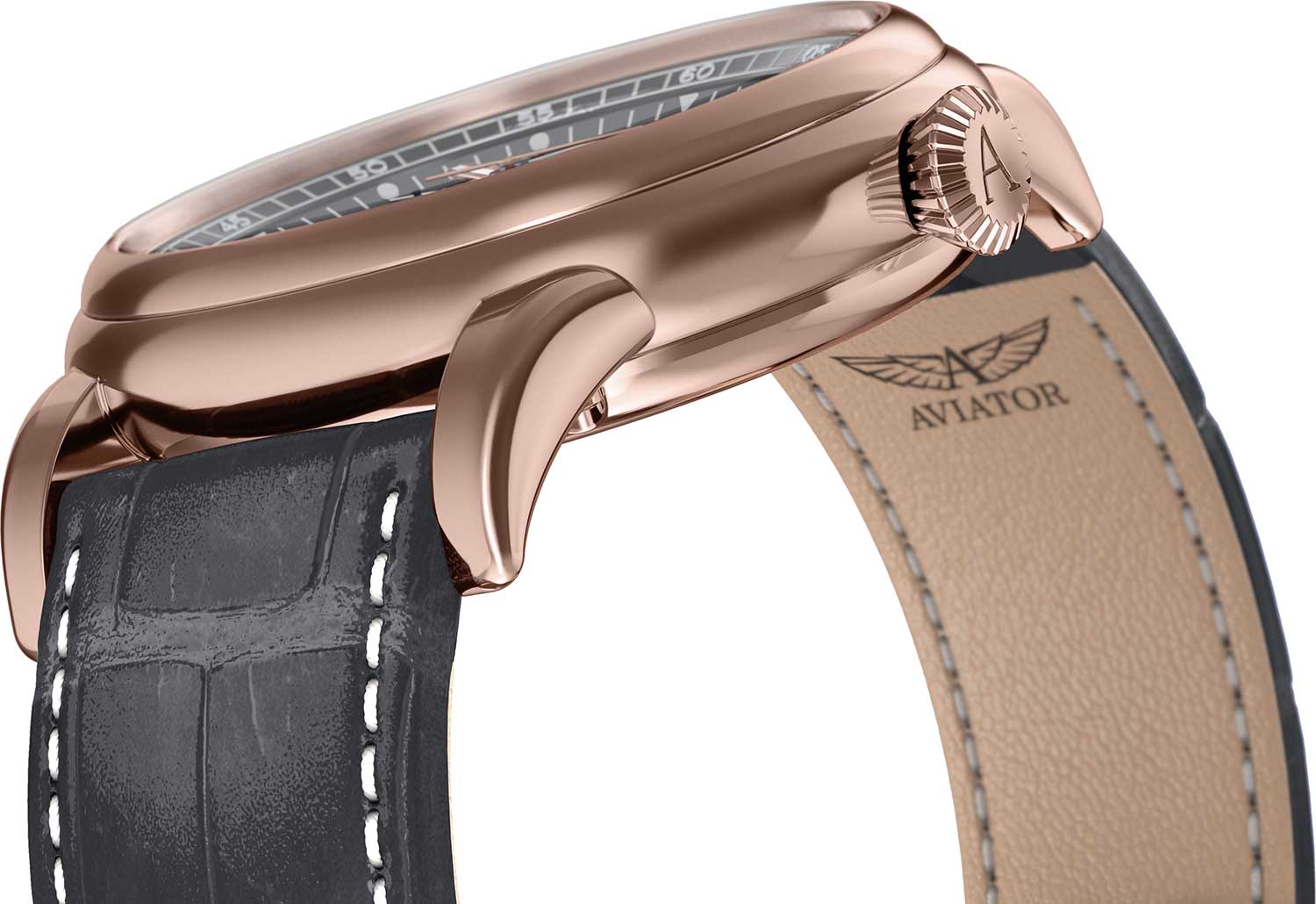 Aviator Douglas Day Date V.3.35.2.283.4 — швейцарские часы в классике авиадизайна, сочетающие безупречную читаемость и высокую надёжность. Лимитированная серия - 40 экземпляров. Корпус диаметром 41,2 мм выполнен из нержавеющей стали 316L с PVD-покрытиемPVDУльтратонкое покрытие наносится в технике вакуумного напыления, сочетает в себе нитрид титана особой прочности со слоем золота или оксида хрома. Несёт в себе декоративную или защитную функцию. цвета розового золота. Накладные метки выполнены в виде римских цифр. Окошко даты находится в положении 6 часов. День недели находится в положении 12 часов. Часовые метки и стрелки покрыты люминесцентным покрытиемЛюминесцентное покрытиеПозволяет считывать показания времени в темноте. Производители наносят на стрелки, часовые индексы, безель или поверхность циферблата светонакопительный состав, дающий холодное свечение. Superluminova, позволяющим легко определять время даже в тёмное время суток. Поверхность защищена прочным сапфировым стекломСапфировое стеклоПрочный и надёжный материал из кристалла сапфира синтетического происхождения, характеризующийся особой твёрдостью и устойчивостью к царапинам и повреждениям. с антибликовым покрытием, устойчивым к царапинам. Сердце модели — швейцарский механизм Sellita SW 240-2, известный своей точностью и долговечностью. Водозащита 100 метров, позволит плавать, нырять и заниматься другими водными видами спорта. Завинчивающаяся головка и задняя крышка обеспечивают уверенную ударопрочностьУдаропрочный корпусМеханизм заключён в корпус, выполненный из современных материалов, устойчивых к ударам, механическим повреждениям и падению с высоты: инновационный пластик, карбон, нержавеющая сталь, титан. и надёжную защиту от влаги и пыли. В механизме 26 камней, запас хода до 41 час. Модель дополнена кожаным ремешком с выразительной текстурой и классическим стилем, закреплённым с помощью застёжке-бабочке с кнопкамиЗастёжка "бабочка"Такой вид застёжки дополняется предохранителями, помогающими избежать случайного раскрытия браслета. Обладают изящным исполнением. — для максимального комфорта и лёгкости в повседневном использовании. Модель вдохновлена американским пассажирским самолетом Douglas DC-3, который является одним из лучших самолетов за всю историю авиации. Aviator — это образец лётной точности, инженерной чёткости и сдержанной роскоши, идеально подходящий для тех, кто ценит функциональность и уверенность в каждом элементе.
