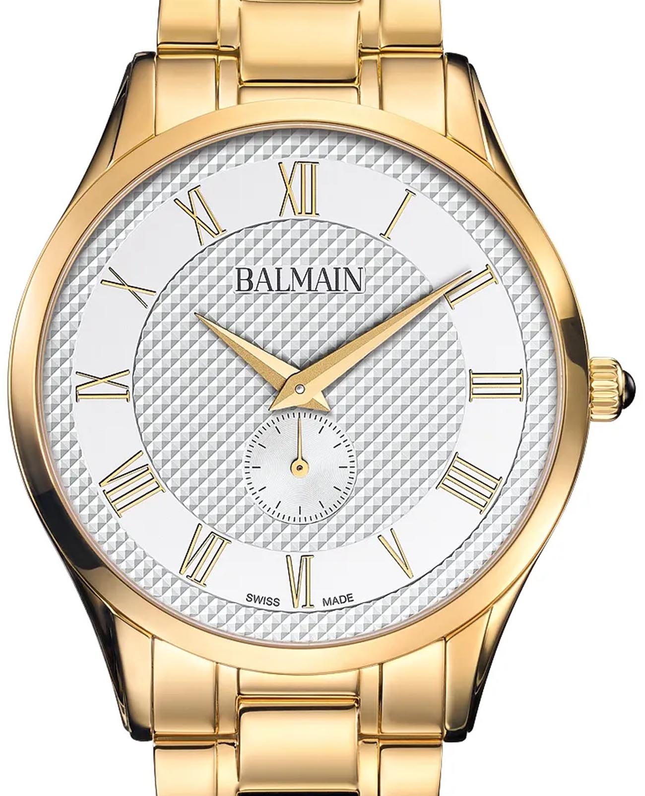 Женские часы Balmain Classic R Gent Small Second B1420.33.22 кварцевый механизм с высокой точностью. Сапфировое стеклоСапфировое стеклоПрочный и надёжный материал из кристалла сапфира синтетического происхождения, характеризующийся особой твёрдостью и устойчивостью к царапинам и повреждениям. устойчивое к появлению царапин, обладающее высокой прозрачностью. Корпус изготовлен из нержавеющей стали с PVD-покрытиемPVDУльтратонкое покрытие наносится в технике вакуумного напыления, сочетает в себе нитрид титана особой прочности со слоем золота или оксида хрома. Несёт в себе декоративную или защитную функцию.. Класс водозащиты: 50 метров, позволит защитить корпус от случайных брызг или капель дождя. Стальной браслет с PVD-покрытиемPVDУльтратонкое покрытие наносится в технике вакуумного напыления, сочетает в себе нитрид титана особой прочности со слоем золота или оксида хрома. Несёт в себе декоративную или защитную функцию. на застёжке «бабочка» с кнопкамиЗастёжка "бабочка"Такой вид застёжки дополняется предохранителями, помогающими избежать случайного раскрытия браслета. Обладают изящным исполнением. .