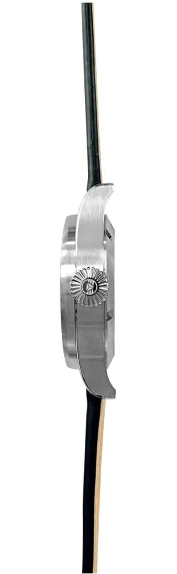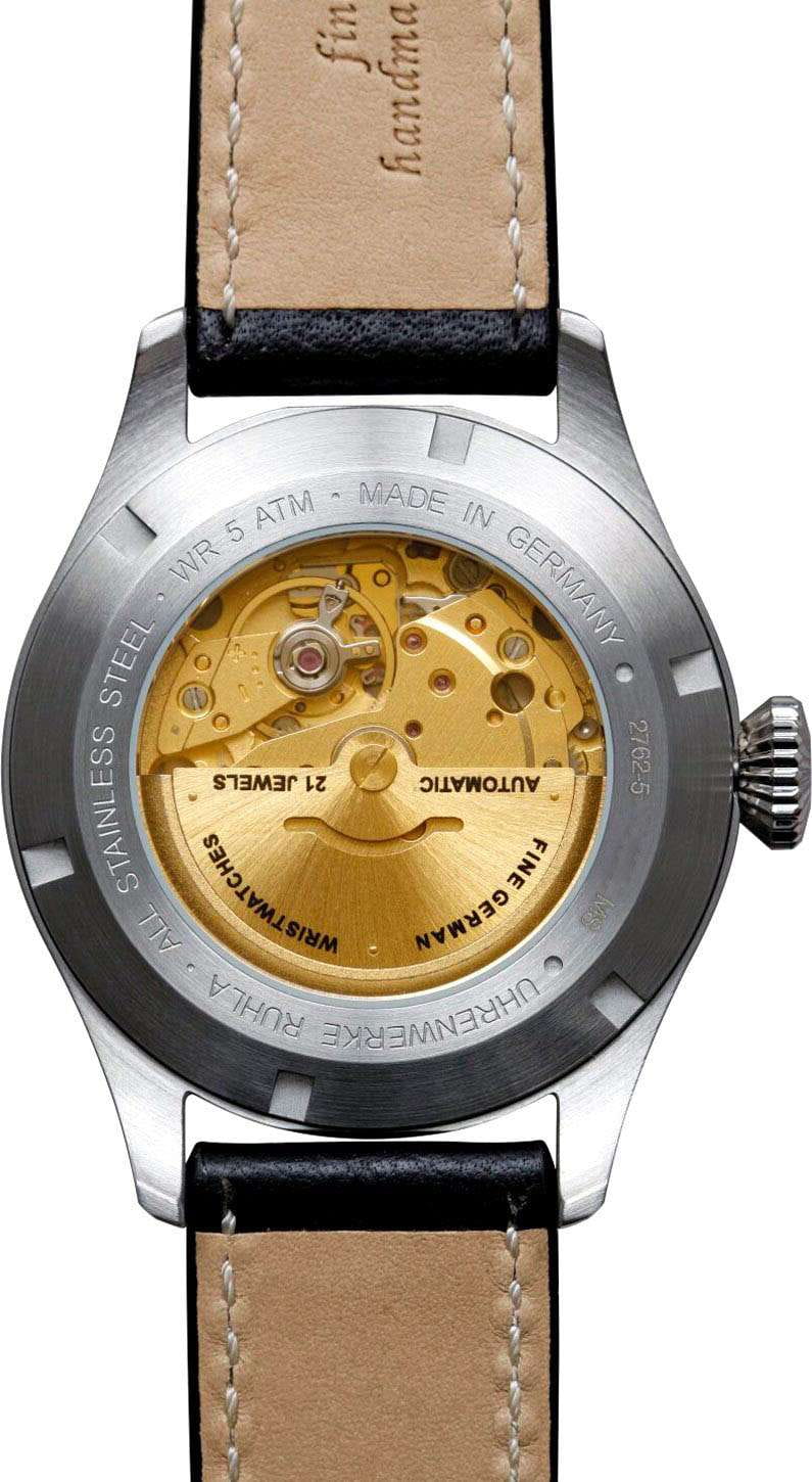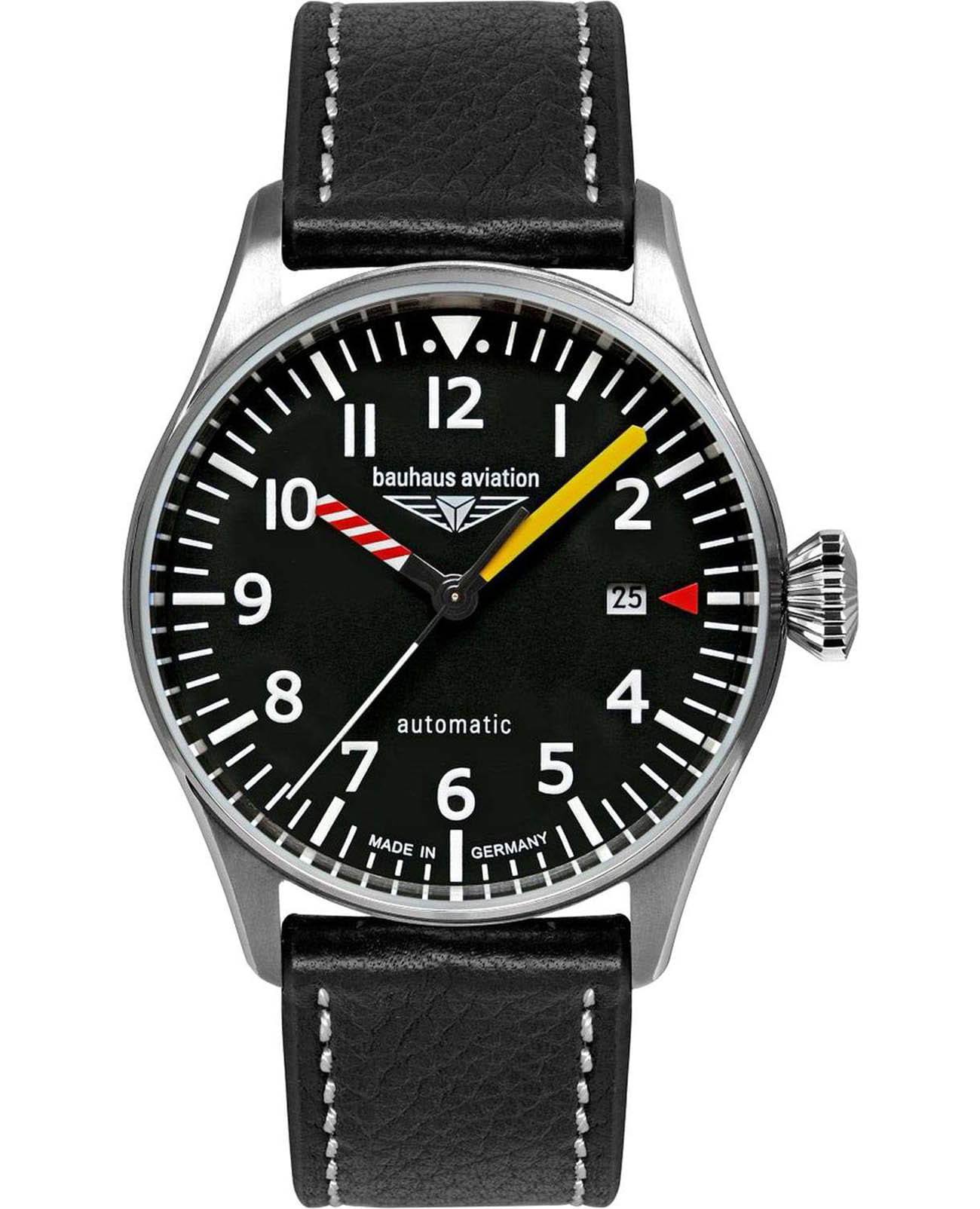 Мужские механические часы с автоподзаводом Bauhaus — это аксессуар в стиле авиационных приборов. Корпус диаметром 40 мм и толщиной 13 мм выполнен из стали с комбинированной матовой и полированной отделкой. Циферблат чёрного цвета оформлен арабскими цифрами и прямоугольными стрелками. Окошко даты расположено в положении 3 часов. Циферблат защищён прочным минеральным стекломМинеральное стеклоМинеральное стекло представляет собой искусственно выращенный минерал кварца. Такое стекло отличается особой устойчивостью к повреждениям и царапинам. Уступает по некоторым качествам сапфировому стеклу. K1. Механизм — автоматический калибр Miyota 8215 (21 камень, частота 21 600 полуколебаний в час) с запасом хода до 42 часов. Рифлёная заводная головка конической формы украшена фирменным логотипом. Завинчивающаяся прозрачная задняя крышка обеспечивает дополнительную защиту и позволяет наблюдать за работой механизма. Часы оснащены кожаным ремешком с декоративной белой строчкой и классической пряжкой. Водонепроницаемость 50 м позволяет использовать часы в повседневных условиях. Идеальный выбор для тех, кто ценит немецкое качество и функциональный дизайн.