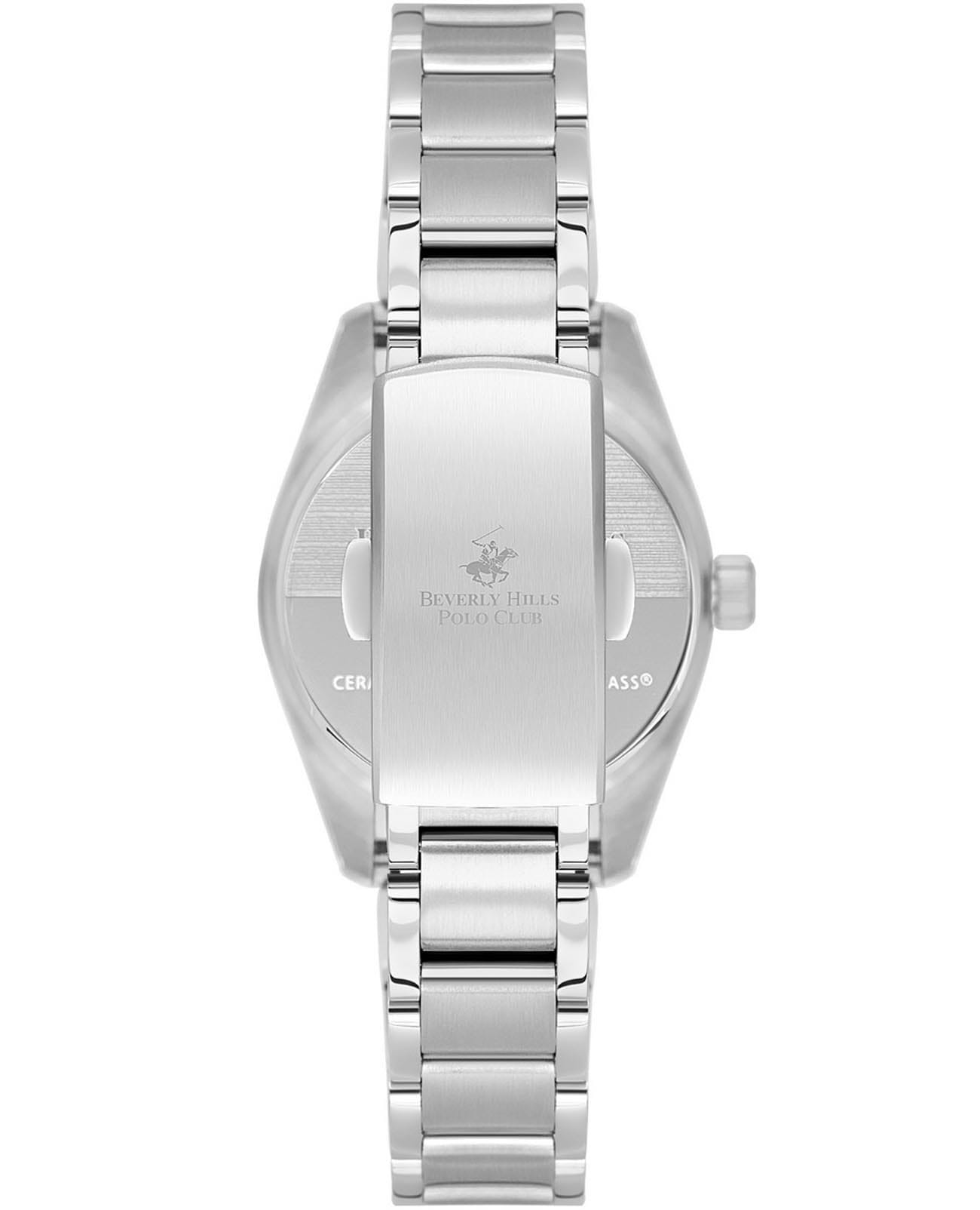 Женские часы Beverly Hills Polo BP3597X.370 с надёжным кварцевым механизмом. Минеральное стеклоМинеральное стеклоМинеральное стекло представляет собой искусственно выращенный минерал кварца. Такое стекло отличается особой устойчивостью к повреждениям и царапинам. Уступает по некоторым качествам сапфировому стеклу. устойчивое к появлению царапин, обладающее высокой прозрачностью. Класс водозащиты: 50 метров, позволит защитить корпус от случайных брызг или капель дождя. Корпус и браслет часов изготовлены из нержавеющей стали. Стальной браслет на раскладной застёжкеРаскладная застёжкаТакой тип застёжки используется только на браслетах из металла. Она никогда не раскрывается полностью, происходит разделение на 2 и более частей. Раскладывающая застёжка снизит вероятность потери часов к минимуму.. Окошко дня недели находится в положении 3 часа. Стрелки и метки с люминесцентным покрытиемЛюминесцентное покрытиеПозволяет считывать показания времени в темноте. Производители наносят на стрелки, часовые индексы, безель или поверхность циферблата светонакопительный состав, дающий холодное свечение..
