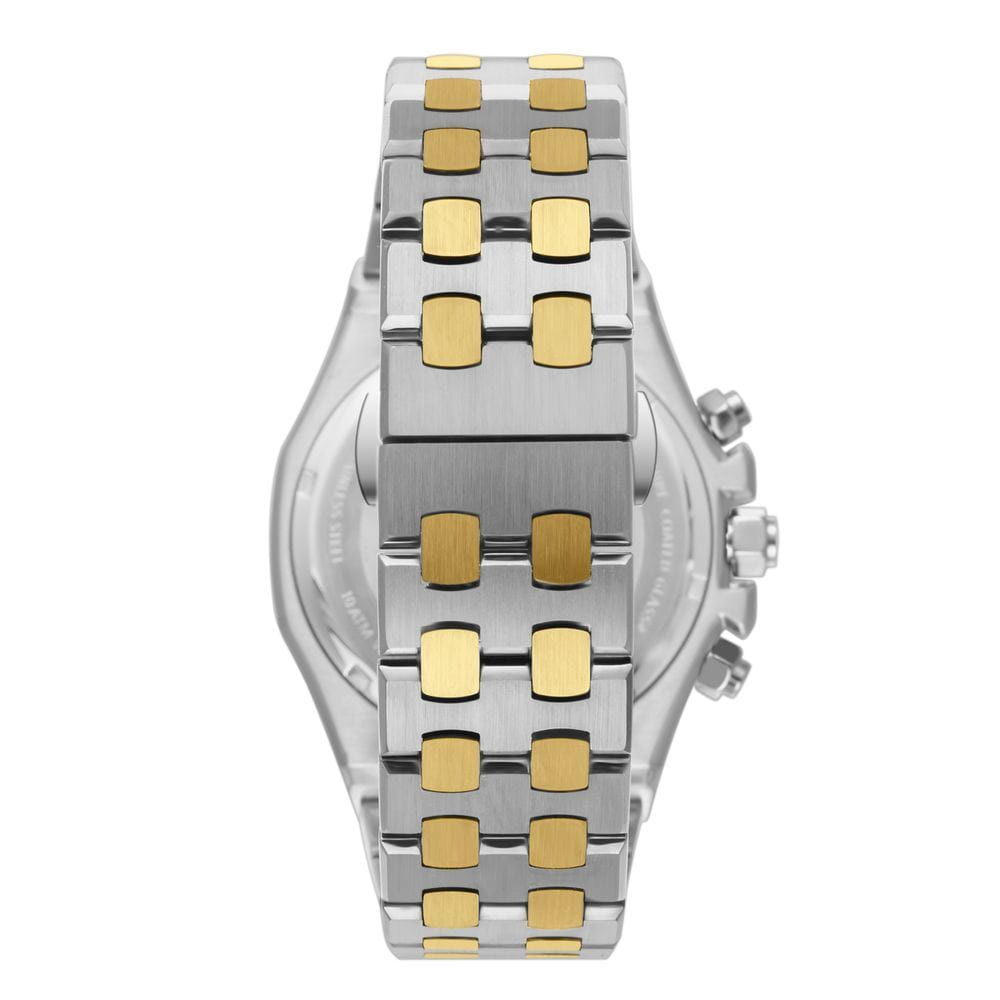 Браслет из стали с тем же IP-покрытиемIP-покрытиеМетод ионного напыления. Демонстрирует повышенную устойчивость к истиранию, окислению и химическим веществам. Под воздействием высокого давления и температуры около 1500°C молекулы металла надёжно соединяются с частицами корпуса часов. завершён застёжкой-бабочкой с кнопкамиЗастёжка "бабочка"Такой вид застёжки дополняется предохранителями, помогающими избежать случайного раскрытия браслета. Обладают изящным исполнением. — с кнопочным механизмом для удобного снятия. Водозащита до 50 м удовлетворит потребности как делового, так и активного образа жизни .