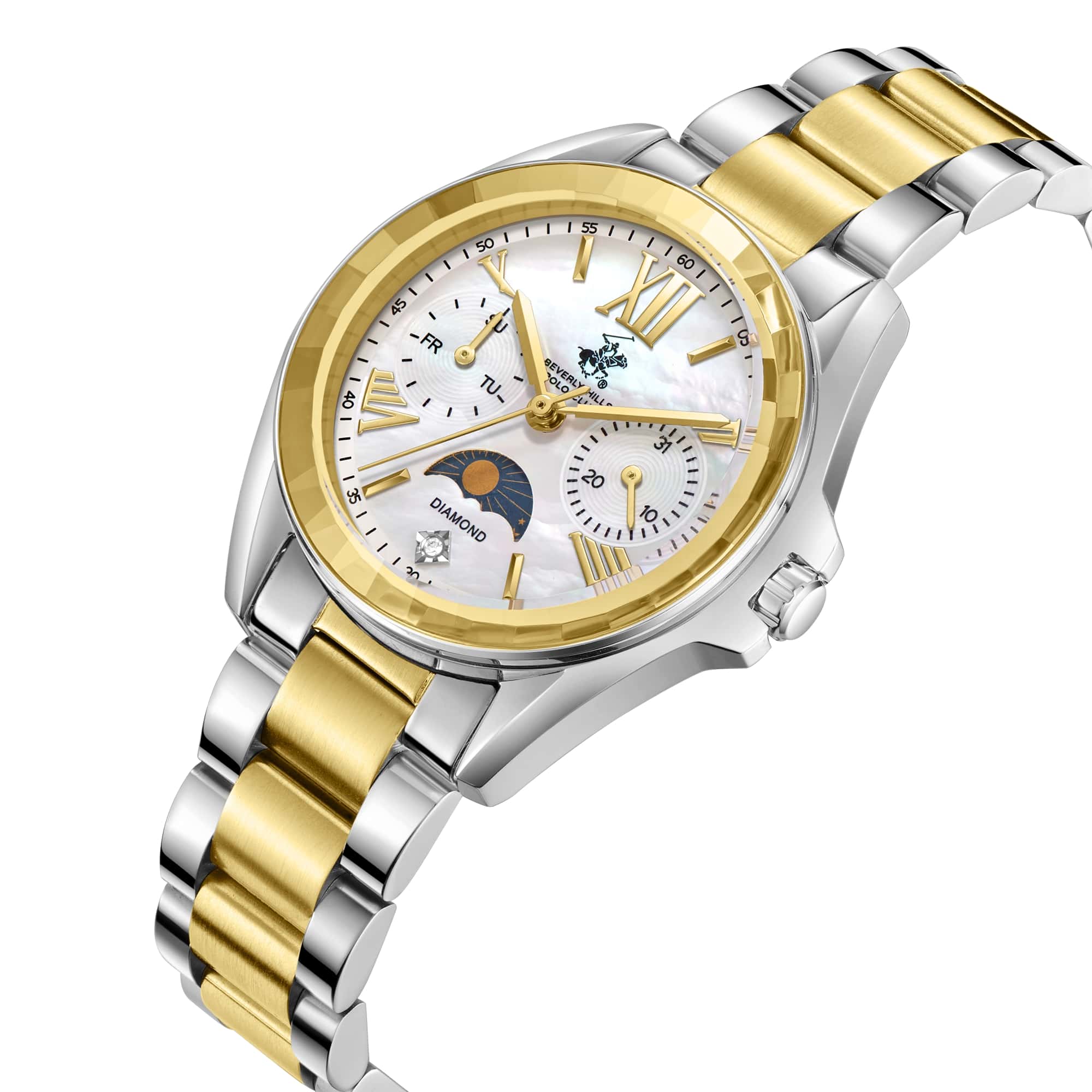 Механизм часов кварцевый, питание от батарейки, что обеспечивает точность хода и минимальное обслуживание. На циферблате отображаются функции даты, дня недели, и лунный календарь делая их особенно удобными для повседневного использования.