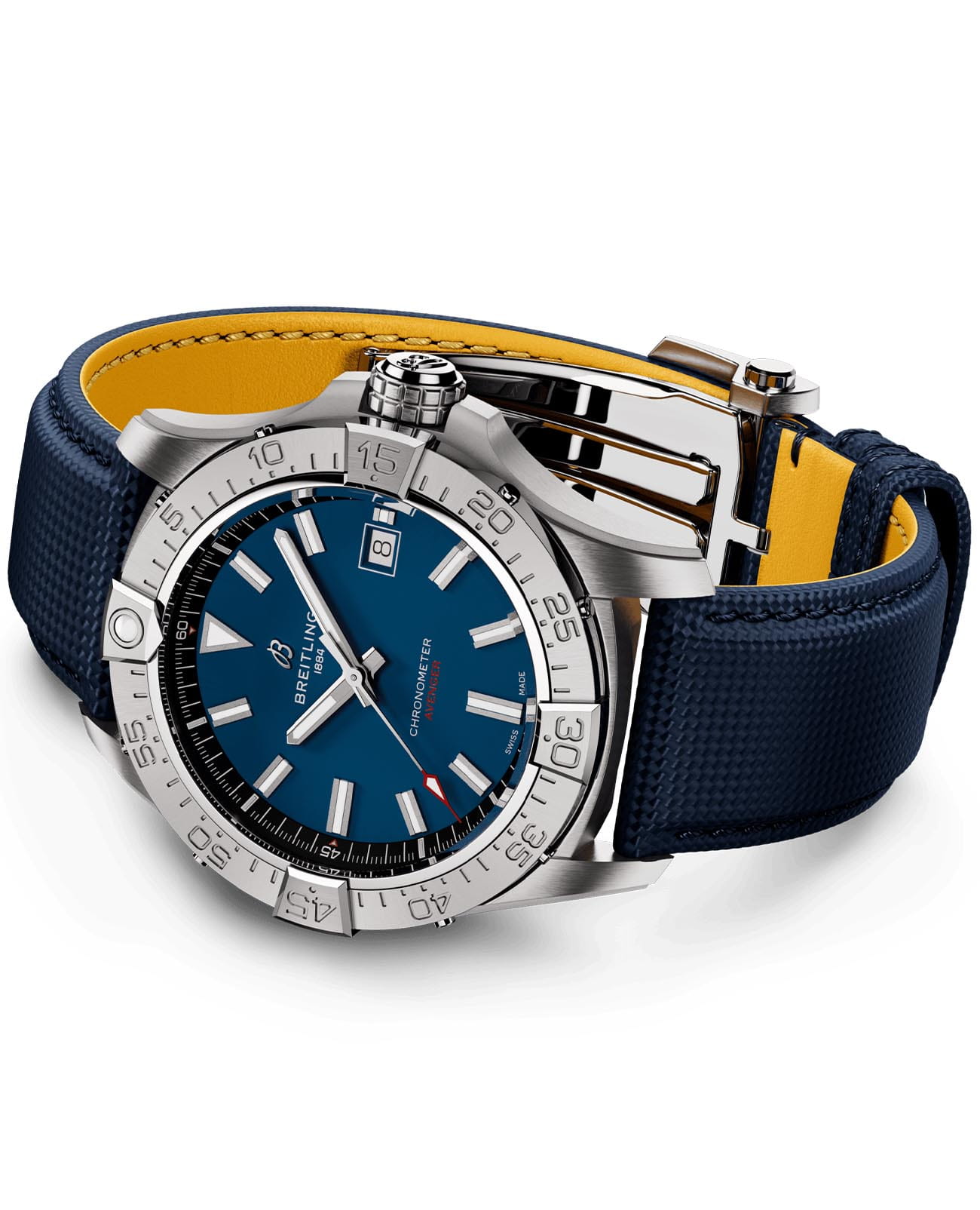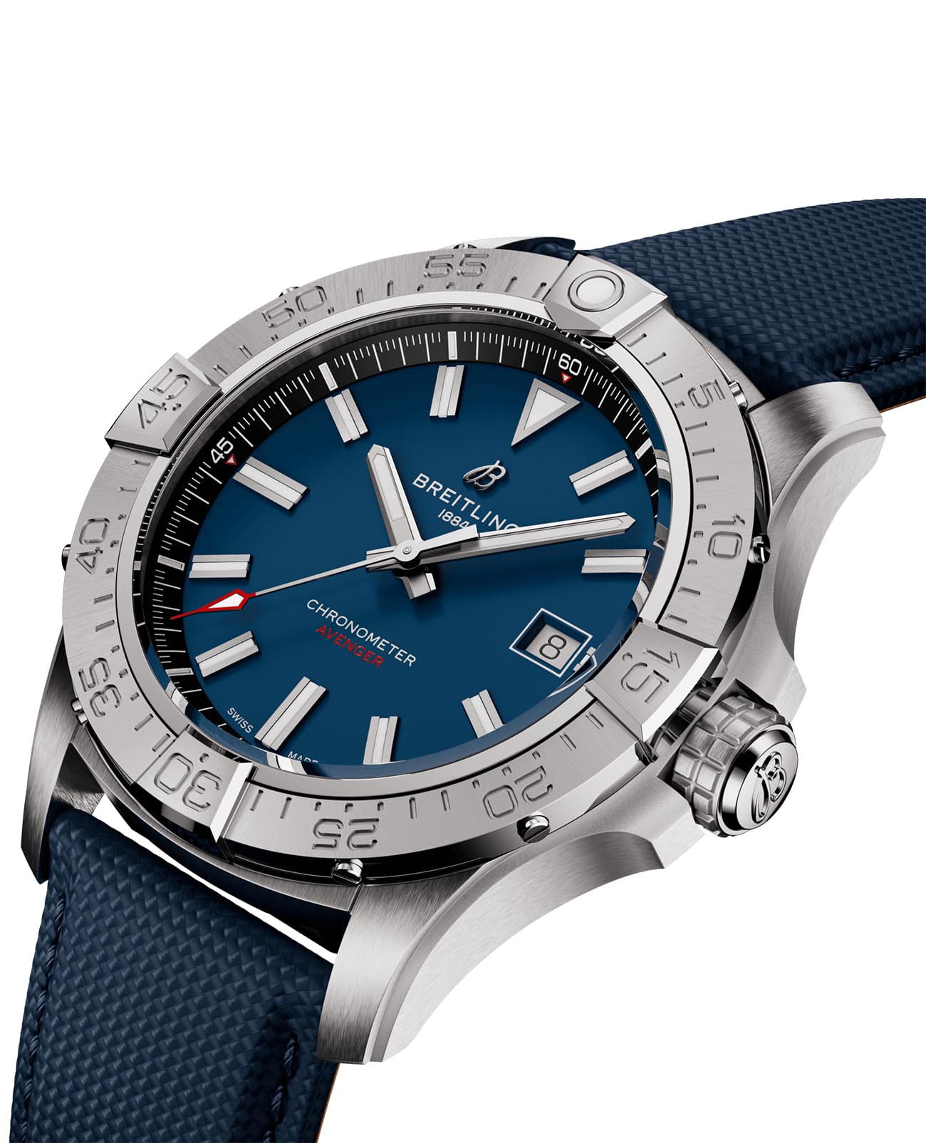 Мужские наручные часы Breitling Avenger Automatic 42 A17328101C1X1 с надёжным автоматическим механизмом. Сапфировое стеклоСапфировое стеклоПрочный и надёжный материал из кристалла сапфира синтетического происхождения, характеризующийся особой твёрдостью и устойчивостью к царапинам и повреждениям. повышенной прозрачности, устойчивое к мелким механическим повреждениям. Вращающийся безельБезельВнешний ободок, закрепляющий стекло. В спортивных часах так называется поворотное кольцо с делениями на циферблате, выполняет роль таймера – замеряет отрезки времени на шкале. Неподвижный безель – элемент декора. Однонаправленно вращающийся безель на дайверских часах позволяет фиксировать моменты погружения и выныривания на поверхность.. Окошко даты находится в положении 3 часа. Стрелки и метки с люминесцентным покрытиемЛюминесцентное покрытиеПозволяет считывать показания времени в темноте. Производители наносят на стрелки, часовые индексы, безель или поверхность циферблата светонакопительный состав, дающий холодное свечение.. Кожаный ремешок на стандартной застёжке. Класс водозащиты: 300 метров, позволит плавать, нырять и заниматься другими водными видами спорта.