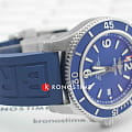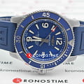 Класс водозащиты: 1000 метров, позволит плавать, нырять и заниматься другими водными видами спорта. Корпус часов изготовлен из нержавеющей стали, серебристого цвета. Синий каучуковый ремешок с кнопочной застежкой.