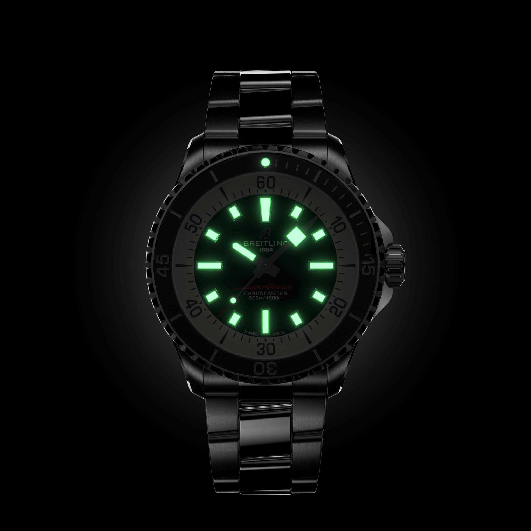 Мужские водонепроницаемые швейцарские часы Breitling Superocean Automatic 42 A17375E71C1A1, механический механизм (автоматический калибр) с высокой точностью. Сапфировое стеклоСапфировое стеклоПрочный и надёжный материал из кристалла сапфира синтетического происхождения, характеризующийся особой твёрдостью и устойчивостью к царапинам и повреждениям. устойчивое к появлению царапин, обладающее высокой прозрачностью. Класс водозащиты: 300 метров, позволит плавать, нырять и заниматься другими водными видами спорта. Корпус часов изготовлен из стали. Стальной браслет с раскладной застёжкойРаскладная застёжкаТакой тип застёжки используется только на браслетах из металла. Она никогда не раскрывается полностью, происходит разделение на 2 и более частей. Раскладывающая застёжка снизит вероятность потери часов к минимуму.. Стрелки и метки с люминесцентным покрытиемЛюминесцентное покрытиеПозволяет считывать показания времени в темноте. Производители наносят на стрелки, часовые индексы, безель или поверхность циферблата светонакопительный состав, дающий холодное свечение.. Широкие стрелки и индексы с люминесцентным покрытиемЛюминесцентное покрытиеПозволяет считывать показания времени в темноте. Производители наносят на стрелки, часовые индексы, безель или поверхность циферблата светонакопительный состав, дающий холодное свечение. обеспечивают легкую читаемость под водой. Вращающийся стальной безельБезельВнешний ободок, закрепляющий стекло. В спортивных часах так называется поворотное кольцо с делениями на циферблате, выполняет роль таймера – замеряет отрезки времени на шкале. Неподвижный безель – элемент декора. Однонаправленно вращающийся безель на дайверских часах позволяет фиксировать моменты погружения и выныривания на поверхность. с люминесцентным покрытиемЛюминесцентное покрытиеПозволяет считывать показания времени в темноте. Производители наносят на стрелки, часовые индексы, безель или поверхность циферблата светонакопительный состав, дающий холодное свечение. Superluminova из нержавеющей стали и керамики, защищенный от царапин, никогда не изнашивается и не выцветает.