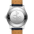 Класс водозащиты: 100 метров, позволит плавать, нырять и заниматься другими водными видами спорта. Выпуклое сапфировое стекло с антибликовым покрытием с обoеих сторон. Корпус часов серебристого цвета, изготовлен из нержавеющей стали. Ремешок из телячьей кожи синего цвета с пряжкой из нержавеющей стали.