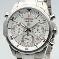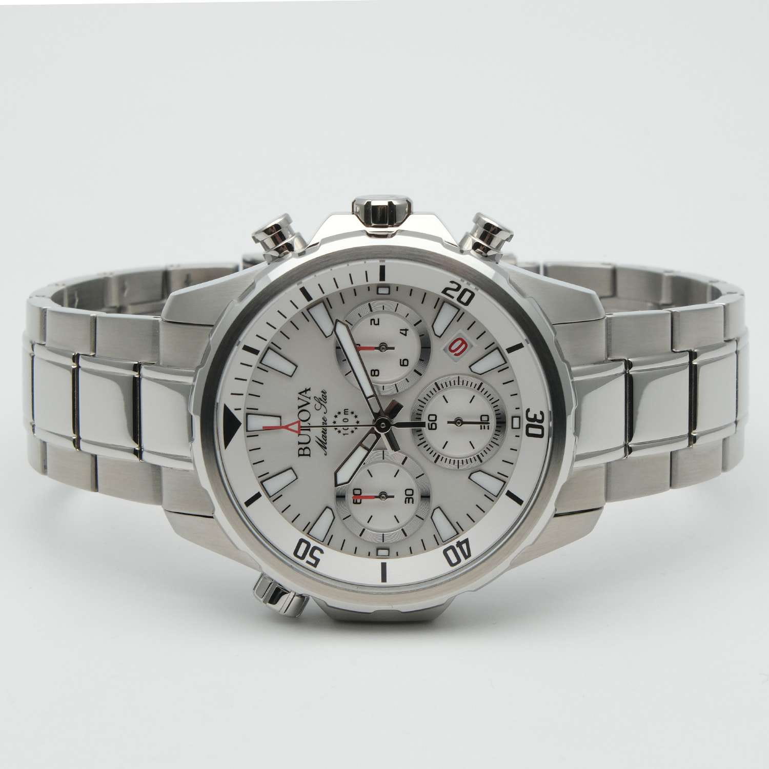 Мужские кварцевые часы-хронографХронографФункция позволяет измерять отрезки времени с особой точностью: часы, минуты, секунды. Верным признаком хронографа является наличие на циферблате 3 дополнительных окошек-счётчиков. Bulova Marine Star 96B255 – отражающий идеальное сочетание современного дизайна, надёжности и функциональности. Элегантный облик станет превосходным завершением образа, наделив его индивидуальным характером. Корпус из нержавеющей стали идеально сбалансирован и элегантен. Минеральное стеклоМинеральное стеклоМинеральное стекло представляет собой искусственно выращенный минерал кварца. Такое стекло отличается особой устойчивостью к повреждениям и царапинам. Уступает по некоторым качествам сапфировому стеклу. защищает циферблат от царапин и устойчивое к мелким механическим повреждениям. Стальной браслет на раскладной застёжкеРаскладная застёжкаТакой тип застёжки используется только на браслетах из металла. Она никогда не раскрывается полностью, происходит разделение на 2 и более частей. Раскладывающая застёжка снизит вероятность потери часов к минимуму. обеспечивает комфортное ношение. Стрелки и метки с люминесцентным покрытиемЛюминесцентное покрытиеПозволяет считывать показания времени в темноте. Производители наносят на стрелки, часовые индексы, безель или поверхность циферблата светонакопительный состав, дающий холодное свечение. позволяющие легко определять время даже в темноте. Водозащита 100 метров, позволит плавать, нырять и заниматься другими водными видами спорта. Окошко даты находится в положении между 4 и 5 часов. Эта модель – отличный выбор для тех, кто ищет сочетание стиля, качества и функциональности. Часы станут не только полезным аксессуаром, но и выразительным элементом вашего имиджа.