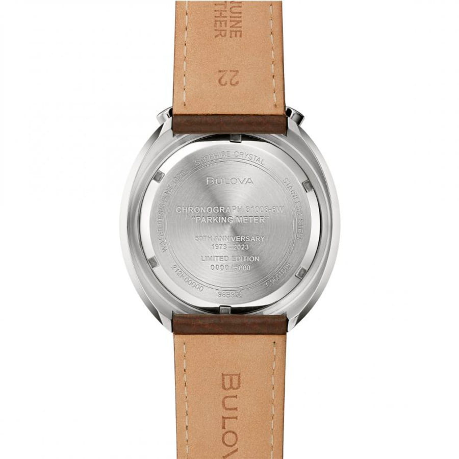 Мужские кварцевые часы-хронографХронографФункция позволяет измерять отрезки времени с особой точностью: часы, минуты, секунды. Верным признаком хронографа является наличие на циферблате 3 дополнительных окошек-счётчиков. Bulova Parking Meter 98B390 – отражающий идеальное сочетание современного дизайна, надёжности и функциональности. Лимитированная серия - 5000 экземпляров. Корпус из нержавеющей стали серебристого цвета, диаметром 43 мм идеально сбалансирован и надежен. Сапфировое стеклоСапфировое стеклоПрочный и надёжный материал из кристалла сапфира синтетического происхождения, характеризующийся особой твёрдостью и устойчивостью к царапинам и повреждениям. защищает циферблат от царапин и устойчивое к механическим повреждениям. Окошко даты находится в положении 3 часа. Кожаный ремешок на стандартной застёжке обеспечивает комфортное ношение. БезельБезельВнешний ободок, закрепляющий стекло. В спортивных часах так называется поворотное кольцо с делениями на циферблате, выполняет роль таймера – замеряет отрезки времени на шкале. Неподвижный безель – элемент декора. Однонаправленно вращающийся безель на дайверских часах позволяет фиксировать моменты погружения и выныривания на поверхность. с PVD-покрытиемPVDУльтратонкое покрытие наносится в технике вакуумного напыления, сочетает в себе нитрид титана особой прочности со слоем золота или оксида хрома. Несёт в себе декоративную или защитную функцию.. Водозащита 100 метров позволит плавать, нырять и заниматься другими водными видами спорта. ТахиметрТахиметрРазмеченная шкала, располагается на ободке или безеле часов. Тахиметр позволяет рассчитать скорость на определённом участке пути, расстояние измеряется в километрах или милях. по внешнему краю. Стрелки с люминесцентным покрытиемЛюминесцентное покрытиеПозволяет считывать показания времени в темноте. Производители наносят на стрелки, часовые индексы, безель или поверхность циферблата светонакопительный состав, дающий холодное свечение. позволяющие легко определять время даже в темноте. Эта модель – отличный выбор для тех, кто ищет сочетание стиля, качества и функциональности. Часы станут не только полезным аксессуаром, но и выразительным элементом вашего имиджа.