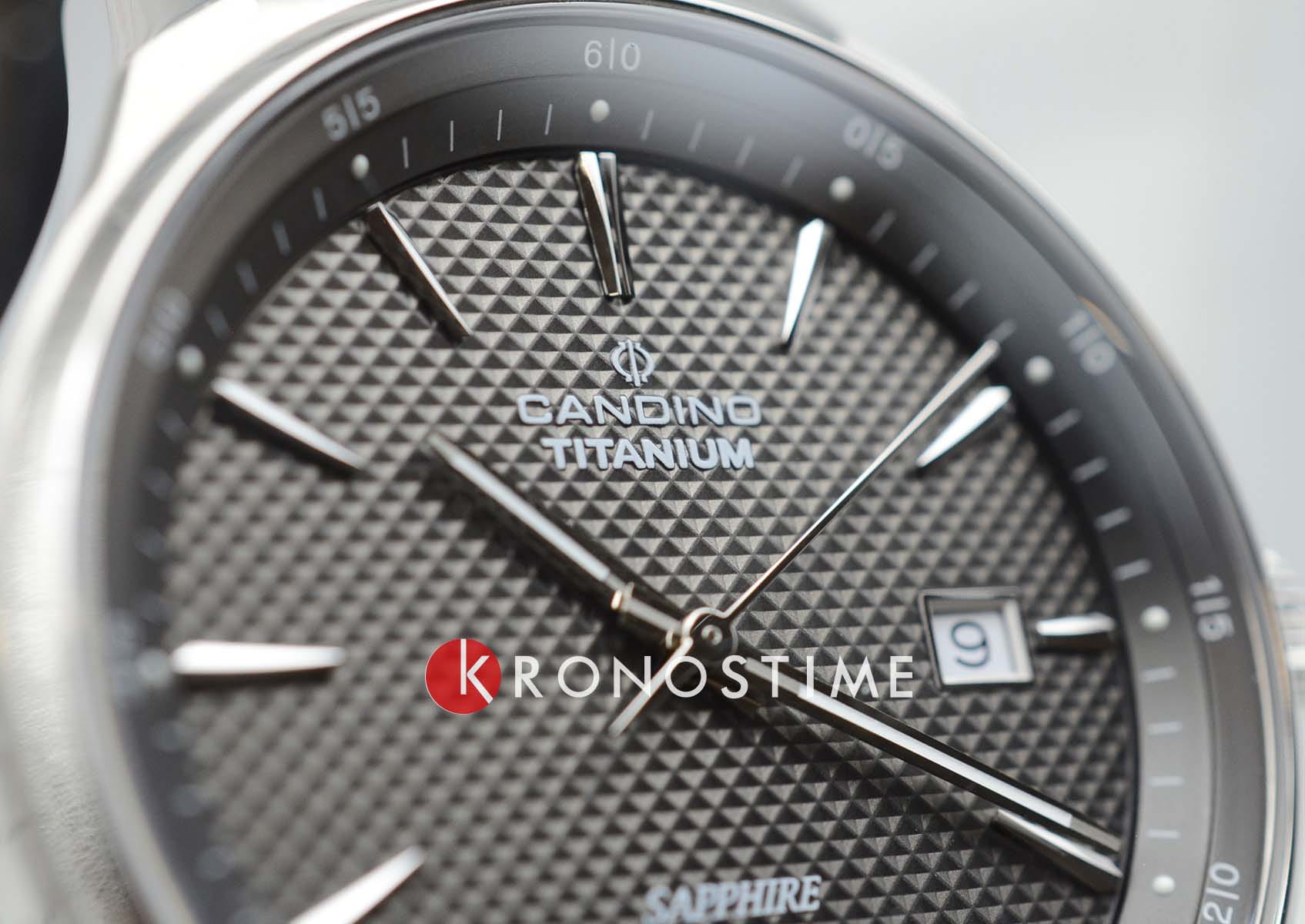 Candino C4606/D, мужские кварцевые часы. Корпус и браслет из титана, диаметр 41 мм, вес 100 г лёгкость и комфорт на весь день. Чёрный циферблат с минималистичными штрих-метками, окошко даты на 3 часах. Стрелки с люминисцентным покрытиемЛюминесцентное покрытиеПозволяет считывать показания времени в темноте. Производители наносят на стрелки, часовые индексы, безель или поверхность циферблата светонакопительный состав, дающий холодное свечение. для удобного чтения в темноте. Стекло сапфировоеСапфировое стеклоПрочный и надёжный материал из кристалла сапфира синтетического происхождения, характеризующийся особой твёрдостью и устойчивостью к царапинам и повреждениям., водозащита 50 м дождь и брызги не помеха. Браслет с раскладной застёжкойРаскладная застёжкаТакой тип застёжки используется только на браслетах из металла. Она никогда не раскрывается полностью, происходит разделение на 2 и более частей. Раскладывающая застёжка снизит вероятность потери часов к минимуму.. Гипоаллергенный титан, точный механизм и строгий функциональный дизайн для ценителей сдержанной мужской эстетики.