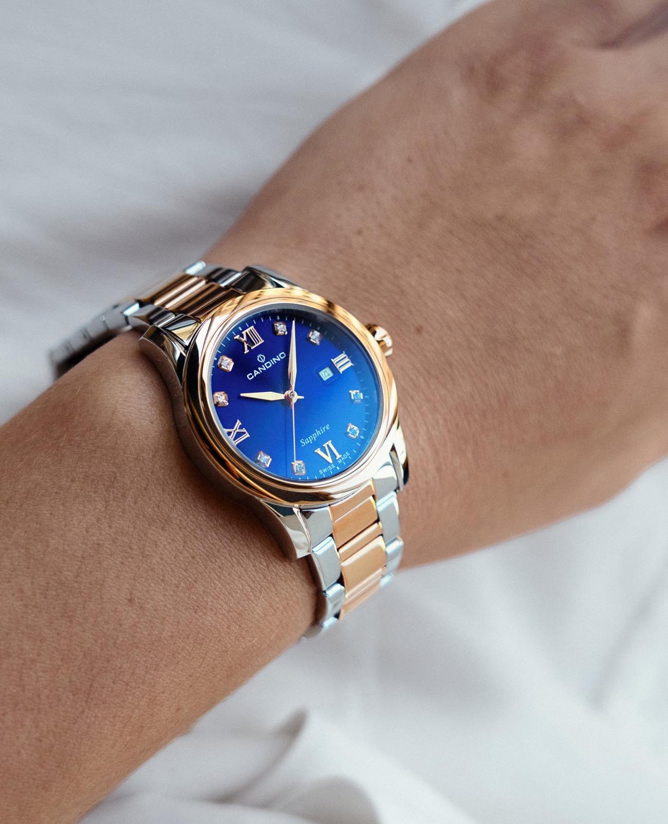 Женские швейцарские часы Candino Elegance C4739/4 с надёжным кварцевым механизмом. Корпус часов изготовлен из нержавеющей стали. Сапфировое стеклоСапфировое стеклоПрочный и надёжный материал из кристалла сапфира синтетического происхождения, характеризующийся особой твёрдостью и устойчивостью к царапинам и повреждениям. устойчивое к мелким механическим повреждениям. Стальной браслет с частичным PVD-покрытиемPVDУльтратонкое покрытие наносится в технике вакуумного напыления, сочетает в себе нитрид титана особой прочности со слоем золота или оксида хрома. Несёт в себе декоративную или защитную функцию. на раскладной застёжкеРаскладная застёжкаТакой тип застёжки используется только на браслетах из металла. Она никогда не раскрывается полностью, происходит разделение на 2 и более частей. Раскладывающая застёжка снизит вероятность потери часов к минимуму.. Циферблат украшен цирконами. Окошко даты находится в положении 3 часа. Класс водозащиты: 50 метров, позволит защитить корпус от случайных брызг или капель дождя.