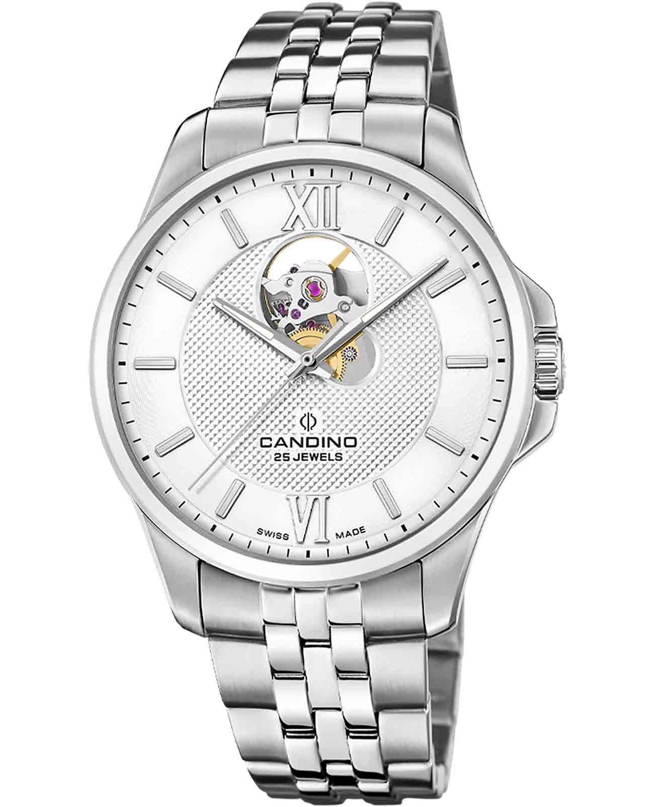 Мужские часы Candino C4780/1 из коллекции Automatic — воплощение изысканности и надежности. Эти часы оснащены автоматическим механизмом, который обеспечивает точное измерение времени без необходимости частой подзаводки. Элегантный белый циферблат с открытым механизмом, метками в виде штрихов и римскими цифрами VI и XII придают модели уникальный и современный вид, позволяя заглянуть в сердце механизма. Корпус диаметром 42 мм изготовлен из прочной нержавеющей стали, что гарантирует долговечность и устойчивость к внешним повреждениям. Сапфировое стеклоСапфировое стеклоПрочный и надёжный материал из кристалла сапфира синтетического происхождения, характеризующийся особой твёрдостью и устойчивостью к царапинам и повреждениям. обеспечивает высокую степень защиты от царапин и сохраняет первозданный вид часов на протяжении долгого времени. Стрелки и метки с люминесцентным покрытиемЛюминесцентное покрытиеПозволяет считывать показания времени в темноте. Производители наносят на стрелки, часовые индексы, безель или поверхность циферблата светонакопительный состав, дающий холодное свечение., что облегчает чтение времени даже в условиях слабого освещения. Стальной браслет на раскладной застёжкеРаскладная застёжкаТакой тип застёжки используется только на браслетах из металла. Она никогда не раскрывается полностью, происходит разделение на 2 и более частей. Раскладывающая застёжка снизит вероятность потери часов к минимуму. не только дополняет общую эстетику, но и обеспечивает комфортное ношение на протяжении всего дня. С водонепроницаемостью до 50 метров эти часы подходят для повседневного использования, выдерживая случайные контакты с водой, такие как дождь или мытьё рук. Эти часы станут идеальным аксессуаром для уверенного в себе мужчины, который ценит стиль и функциональность в каждом элементе своего образа.