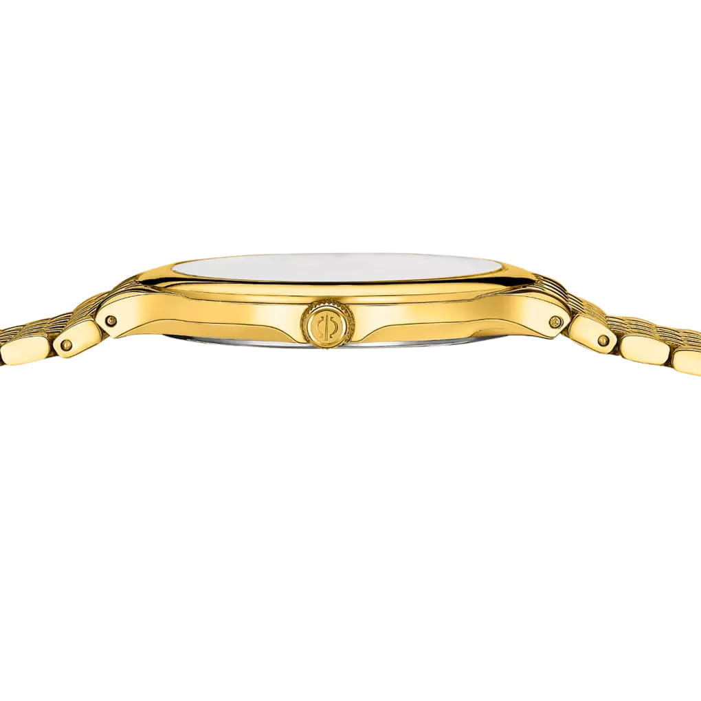 Мужские кварцевые часы Candino из коллекции Series 1947 — это сочетание минимализма, швейцарского качества и современного дизайна. Корпус диаметром 39 мм и толщиной 6 мм выполнен из нержавеющей стали 316L с PVD-покрытиемPVDУльтратонкое покрытие наносится в технике вакуумного напыления, сочетает в себе нитрид титана особой прочности со слоем золота или оксида хрома. Несёт в себе декоративную или защитную функцию. жёлтого золота. Циферблат золотого цвета оформлен двумя стрелками без индикации даты, что придаёт дизайну чистоту и элегантность. Циферблат защищён сапфировым стекломСапфировое стеклоПрочный и надёжный материал из кристалла сапфира синтетического происхождения, характеризующийся особой твёрдостью и устойчивостью к царапинам и повреждениям., устойчивым к царапинам. Механизм — кварцевый произведённый в Швейцарии. Часы оснащены стальным браслетом с PVD-покрытиемPVDУльтратонкое покрытие наносится в технике вакуумного напыления, сочетает в себе нитрид титана особой прочности со слоем золота или оксида хрома. Несёт в себе декоративную или защитную функцию. жёлтого золота на застёжке «бабочка» с кнопкамиЗастёжка "бабочка"Такой вид застёжки дополняется предохранителями, помогающими избежать случайного раскрытия браслета. Обладают изящным исполнением. . Водонепроницаемость 50 м позволяет использовать часы в повседневных условиях. Гарантия — 2 года. Идеальный выбор для тех, кто ценит лаконичный стиль, точность и надёжность.