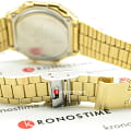 Брендовый аксессуар в золотом цвете имеет IP-покрытиеIP-покрытиеМетод ионного напыления. Демонстрирует повышенную устойчивость к истиранию, окислению и химическим веществам. Под воздействием высокого давления и температуры около 1500°C молекулы металла надёжно соединяются с частицами корпуса часов. стального браслета, защищающее от царапин и изнашивания, а также выполняющее декоративное предназначение. Высокоточный кварцевый механизм. Яркая электролюминесцентная подсветка. Противоударный корпусУдаропрочный корпусМеханизм заключён в корпус, выполненный из современных материалов, устойчивых к ударам, механическим повреждениям и падению с высоты: инновационный пластик, карбон, нержавеющая сталь, титан. 8-угольной формы из надёжного пластика. Удобная застёжка расстёгивается одним касанием. Будильник, автоматический календарь. Габариты: 36,3 x 38,6 x 9,6 мм.