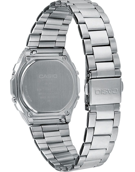 Серебристый аксессуар с фирменным для Casio 8-угольным корпусом будет гармонично смотреться как с деловым пиджаком, так и с повседневной водолазкой. Оригинальности добавляет переливающийся цифровой дисплей. Ударопрочный корпусУдаропрочный корпусМеханизм заключён в корпус, выполненный из современных материалов, устойчивых к ударам, механическим повреждениям и падению с высоты: инновационный пластик, карбон, нержавеющая сталь, титан. и браслет с предохранительной застёжкой сделаны из нержавеющей стали 316L. Надёжное минеральное стекло. Срок работы батарейки - 3 года. Наличие будильника, секундомера, календаря. Светодиодная подсветкаСветодиодная подсветкаСветодиодная или LED-подсветка обеспечивает появление яркого холодного свечения за счёт LED-элементов - маленьких лампочек. Они потребляют минимальное количество энергии, чаще всего можно встретить 1 светодиод, в нижней части циферблата. дисплея. Габариты: 38 x 39,6 x 7,3 мм.
