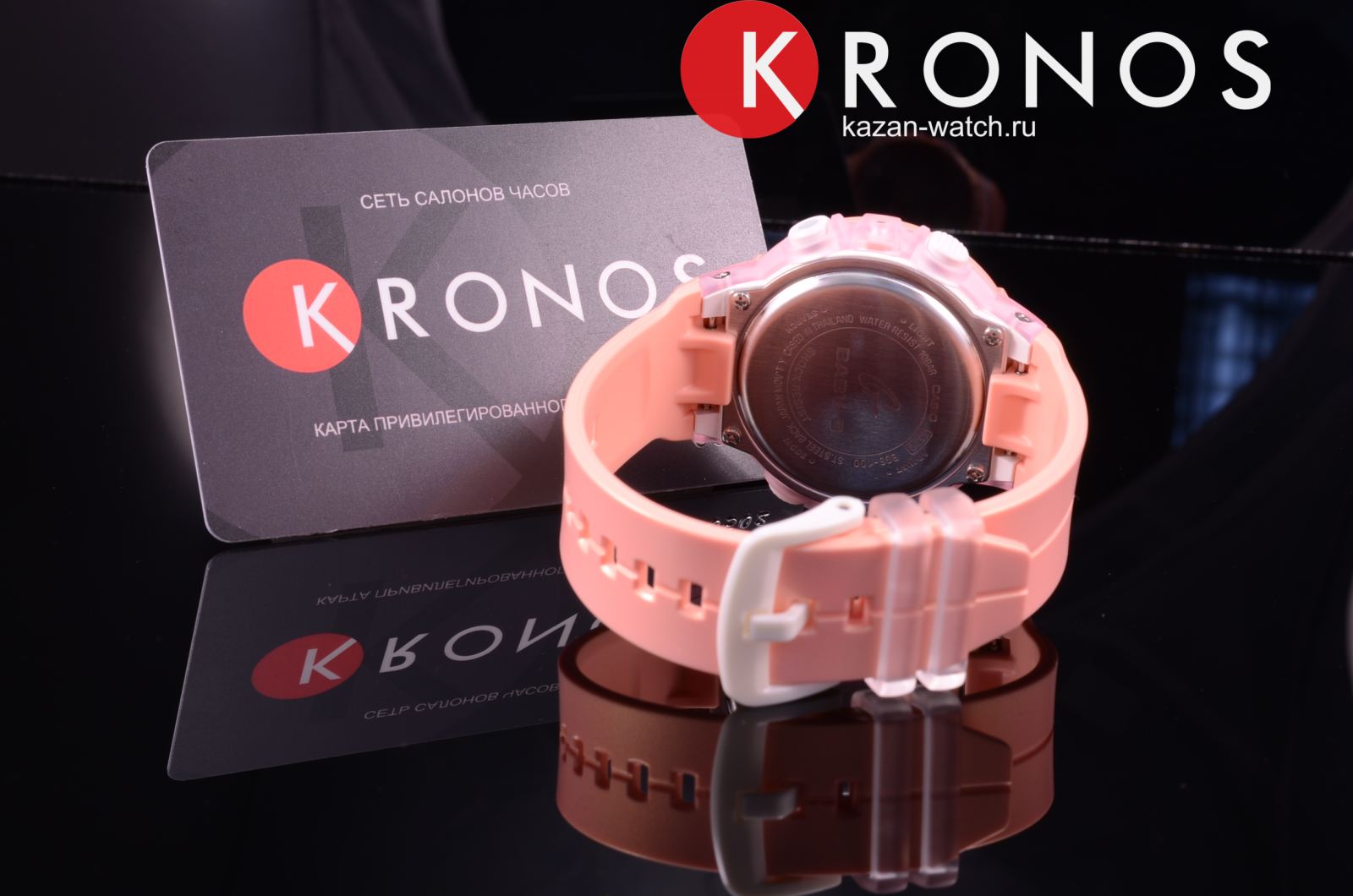 Спортивный аксессуар в персиковом цвете поможет держать себя в форме благодаря таймеру, секундомеру, шагомеру. Счётчик измеряет пройденное количество шагов в диапазоне от 0 до 999999. Вокруг безеляБезельВнешний ободок, закрепляющий стекло. В спортивных часах так называется поворотное кольцо с делениями на циферблате, выполняет роль таймера – замеряет отрезки времени на шкале. Неподвижный безель – элемент декора. Однонаправленно вращающийся безель на дайверских часах позволяет фиксировать моменты погружения и выныривания на поверхность. нанесена шкала в процентах. Она помогает отслеживать план на день, отметка «Goal» обозначает выполнение намеченной цели. Часы выдерживают нагрузки и падение за счёт полимерного противоударного корпусаУдаропрочный корпусМеханизм заключён в корпус, выполненный из современных материалов, устойчивых к ударам, механическим повреждениям и падению с высоты: инновационный пластик, карбон, нержавеющая сталь, титан.. Японский кварцевый механизм. Срок службы батарейки составляет 2 года. Светодиодная подсветкаСветодиодная подсветкаСветодиодная или LED-подсветка обеспечивает появление яркого холодного свечения за счёт LED-элементов - маленьких лампочек. Они потребляют минимальное количество энергии, чаще всего можно встретить 1 светодиод, в нижней части циферблата. ЖК-дисплея и циферблата. Стрелки с люминесцентным покрытиемЛюминесцентное покрытиеПозволяет считывать показания времени в темноте. Производители наносят на стрелки, часовые индексы, безель или поверхность циферблата светонакопительный состав, дающий холодное свечение.. Водозащита 10 бар. Календарь, будильник, второй часовой пояс. Габариты: 42,6 x 45,2 x 13,3 мм.