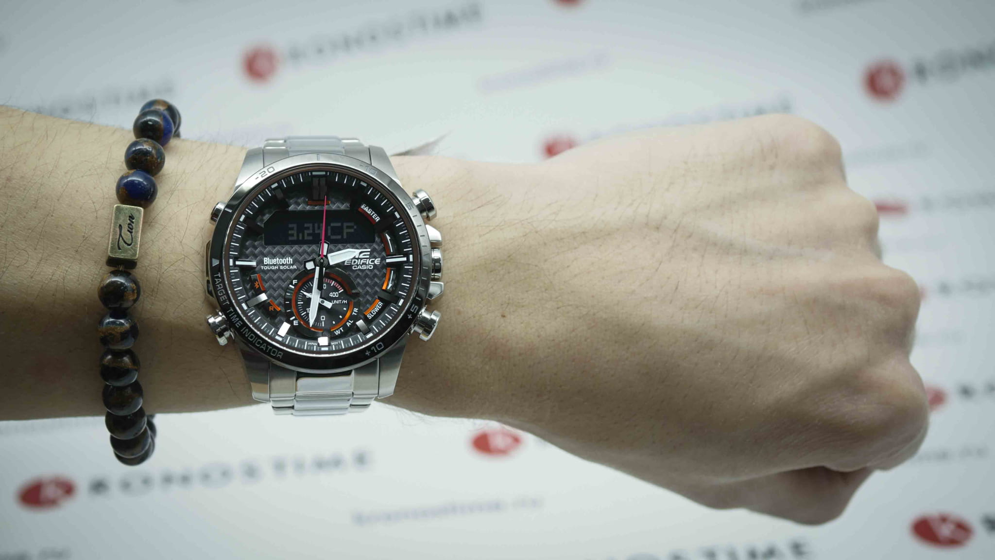 Наручные часы выполнены в автомобильной тематике, тёмный циферблат с карбоновой текстурой дополнен красными элементами. Аналого-цифровая модель со спортивным характером имеет ударопрочный корпусУдаропрочный корпусМеханизм заключён в корпус, выполненный из современных материалов, устойчивых к ударам, механическим повреждениям и падению с высоты: инновационный пластик, карбон, нержавеющая сталь, титан., из нержавеющей стали 316L, защищающий механизм от повреждений. Это часы на солнечной батарее , получающие питание от энергии солнечного света, заряд часов можно отслеживать с помощью специального индикатора. Дополнительные функции: BluetoothBluetoothСовременная технология, позволяющая синхронизировать часы с телефоном и переносить данные. Часы с Bluetooth расширяют возможности вашего смартфона и делают его использование ещё более удобным., автоматический календарь, будильник, секундомер, мировое времяМировое время Полезное часовое усложнение, отображающее время в основных городах и известных областях по всему миру, оно связано с часовыми поясами, удобно для путешественников и бизнесменов. , поиск телефона. Отображение средней скорости пройденного маршрута. Чёрное IP-покрытиеIP-покрытиеМетод ионного напыления. Демонстрирует повышенную устойчивость к истиранию, окислению и химическим веществам. Под воздействием высокого давления и температуры около 1500°C молекулы металла надёжно соединяются с частицами корпуса часов. корпуса. Минеральное стекло. Светодиодная подсветкаСветодиодная подсветкаСветодиодная или LED-подсветка обеспечивает появление яркого холодного свечения за счёт LED-элементов - маленьких лампочек. Они потребляют минимальное количество энергии, чаще всего можно встретить 1 светодиод, в нижней части циферблата.. Водонепроницаемость 10 бар. Габариты: 53,5 x 49,2 x 13,7 мм.