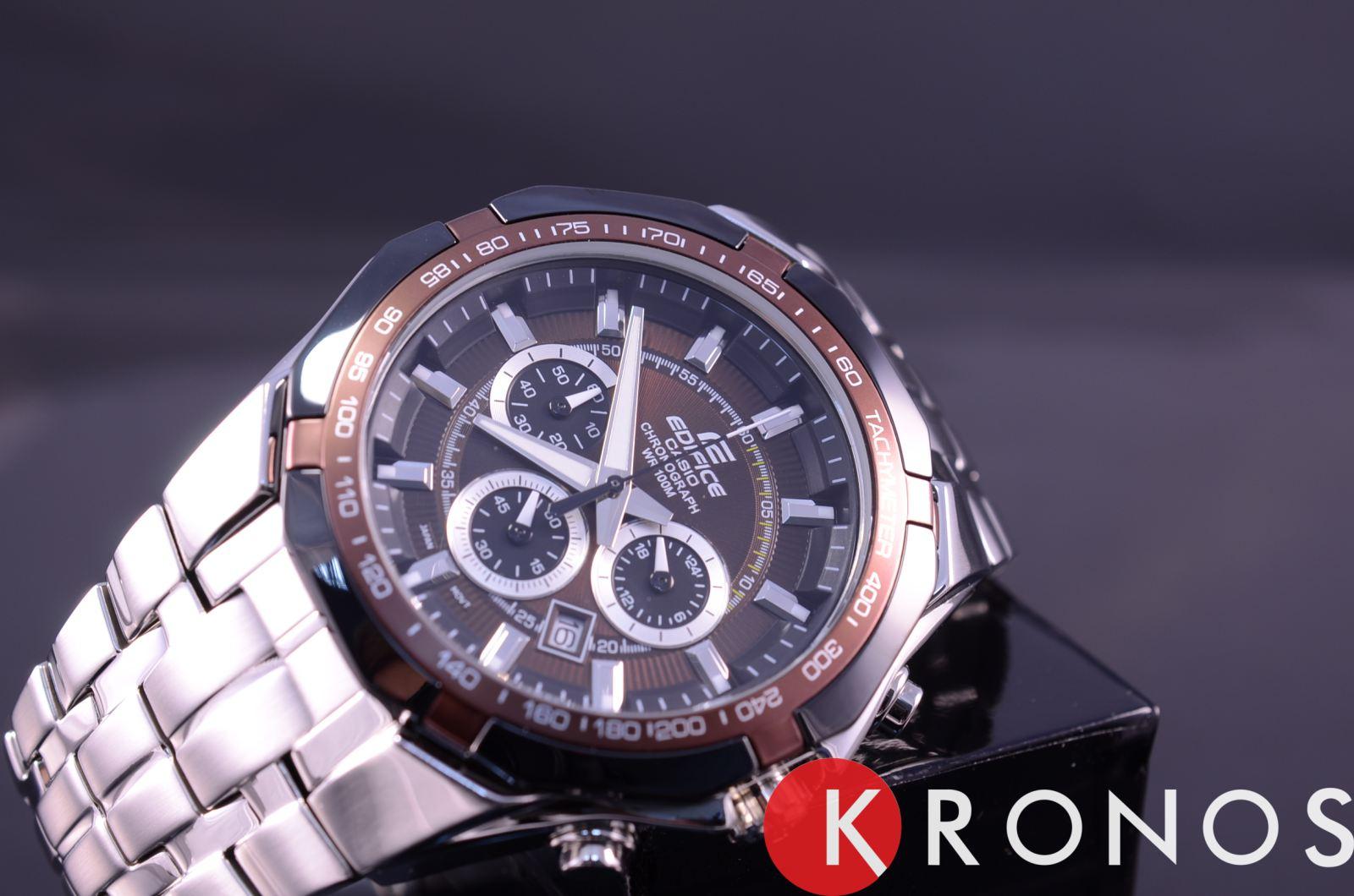 Стильный мужские наручные часы Casio Edifice надежные и практичные. Кварцевый японский механизм Miyota. Точность хода не хуже -10 +15 сек./в месяц. Часы оснащены функцией хронографа и тахиметра. Циферблат шоколадного цвета с контрастными индексами. Безель с IP покрытием коричневого цвета. Стрелки и индексы с светонакопительным нанесением. Корпус и браслет выполнены из высококачественной стали с антикоррозийными свойствами. Минеральное стекло устойчиво к появлению царапин. Водонепроницаемость 100М. В часах можно плавать.