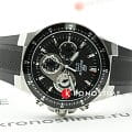 Аксессуар подарит вам истинное удовольствие не только при использовании, но и порадует оригинальным оформлением. Привлекательный узор, необычное расположение миниатюрных окошек-счётчиков, броские элементы - всё это являет тщательно проработанный дизайн. Чёрный безельБезельВнешний ободок, закрепляющий стекло. В спортивных часах так называется поворотное кольцо с делениями на циферблате, выполняет роль таймера – замеряет отрезки времени на шкале. Неподвижный безель – элемент декора. Однонаправленно вращающийся безель на дайверских часах позволяет фиксировать моменты погружения и выныривания на поверхность. имеет износоустойчивое PVD-покрытиеPVDУльтратонкое покрытие наносится в технике вакуумного напыления, сочетает в себе нитрид титана особой прочности со слоем золота или оксида хрома. Несёт в себе декоративную или защитную функцию.. Завинчивающаяся задняя крышка. Люминесцентное светонакопительное покрытиеЛюминесцентное покрытиеПозволяет считывать показания времени в темноте. Производители наносят на стрелки, часовые индексы, безель или поверхность циферблата светонакопительный состав, дающий холодное свечение. стрелок и меток. Минеральное стекло. Каучуковый гибкий ремешок. ХронографХронографФункция позволяет измерять отрезки времени с особой точностью: часы, минуты, секунды. Верным признаком хронографа является наличие на циферблате 3 дополнительных окошек-счётчиков., секундомер, отображение текущего числа. Габариты: 43,8 x 49,1 x 10,8 мм.