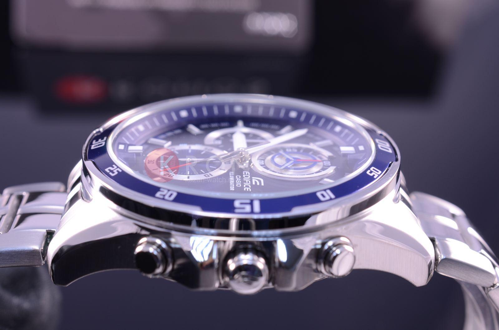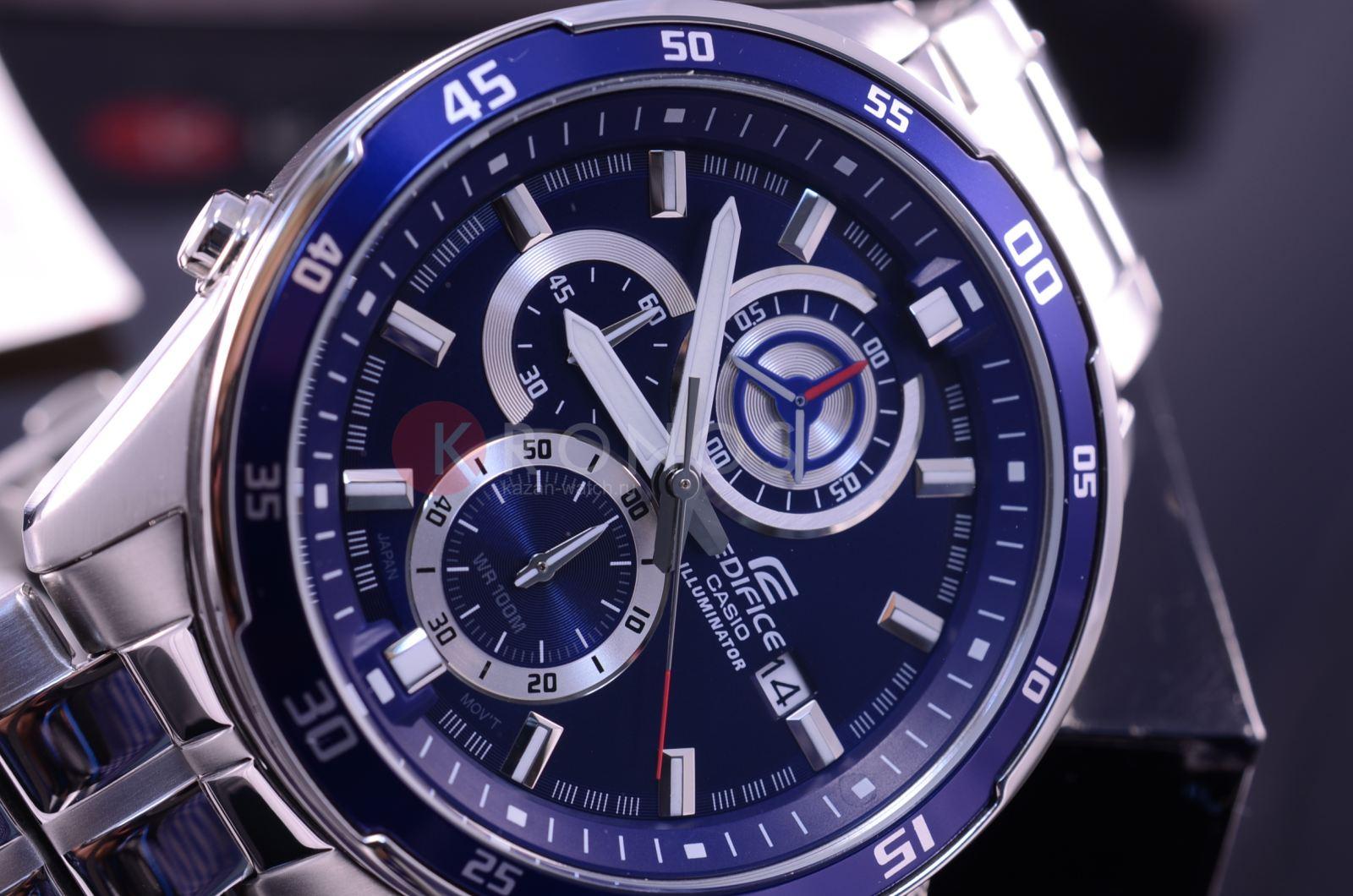 Японский мужской хронографХронографФункция позволяет измерять отрезки времени с особой точностью: часы, минуты, секунды. Верным признаком хронографа является наличие на циферблате 3 дополнительных окошек-счётчиков. из коллекции Edifice отражает дух высоких скоростей, брендовая модель поможет подчеркнуть индивидуальный образ.