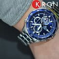 Практичный и надёжный аксессуар стильно смотрится на запястье и подходит к любой одежде. Синий циферблат дополнен контрастными стрелками, часовыми метками и счётчиками, что обеспечивает идеальную читаемость показателей. Особую привлекательность представляет собой безельБезельВнешний ободок, закрепляющий стекло. В спортивных часах так называется поворотное кольцо с делениями на циферблате, выполняет роль таймера – замеряет отрезки времени на шкале. Неподвижный безель – элемент декора. Однонаправленно вращающийся безель на дайверских часах позволяет фиксировать моменты погружения и выныривания на поверхность. с IP-покрытиемIP-покрытиеМетод ионного напыления. Демонстрирует повышенную устойчивость к истиранию, окислению и химическим веществам. Под воздействием высокого давления и температуры около 1500°C молекулы металла надёжно соединяются с частицами корпуса часов. синего цвета. Высокоточный кварцевый механизм Miyota с точностью хода +/- 15 сек/мес. Надёжный стальной браслет. Закаленное минеральное стекло. Люминесцентная подсветкаЛюминесцентное покрытиеПозволяет считывать показания времени в темноте. Производители наносят на стрелки, часовые индексы, безель или поверхность циферблата светонакопительный состав, дающий холодное свечение.. Водонепроницаемость до 100 метров. Отображение даты, секундомер. Габариты: 47,2 x 54 x 13,9 мм.