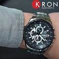 Кварцевый японский механизм Miyota. Точность хода не хуже -10 +15 сек./в месяц. Часы оснащены функцией хронографа, с точностью 1/10с и временем измерения 1ч. Циферблат черного цвета с контрастными элементами дизайна. Стрелки и индексы с светонакопительным нанесением. Корпус и браслет выполнены из нержавеющей стали. Безель с IP покрытием черного цвета.