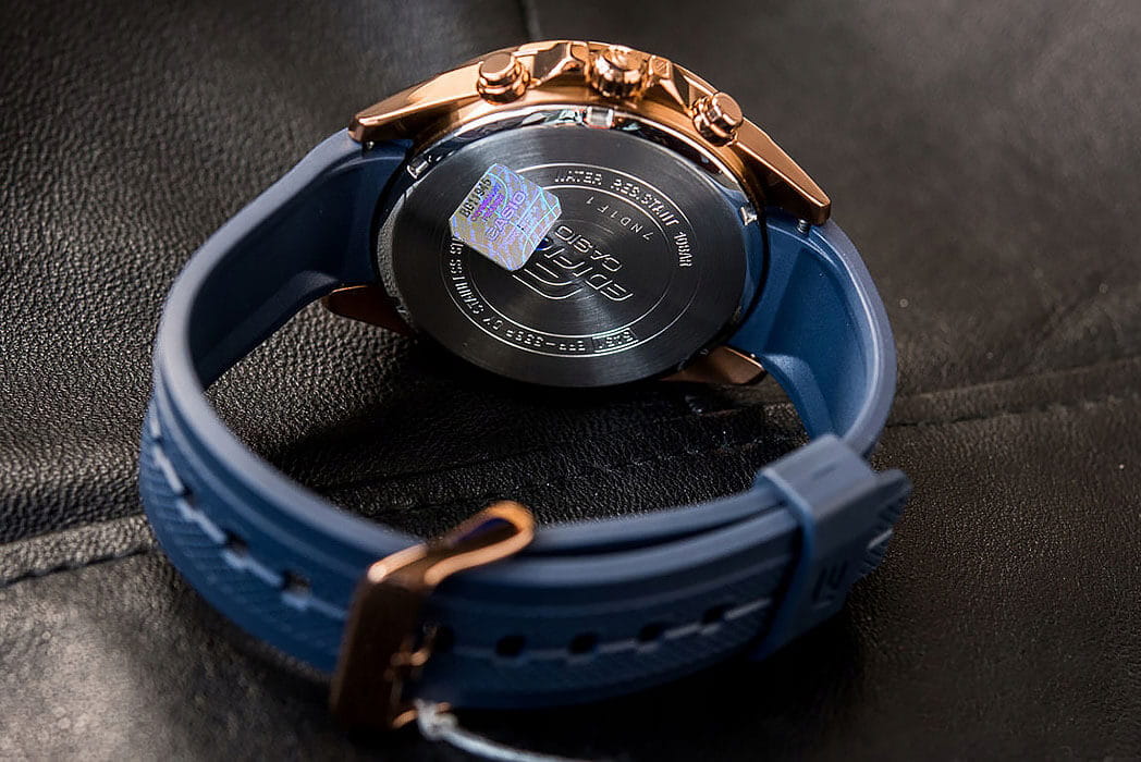 Модель сразу приковывает взгляды, брутальный насыщенно-синий циферблат с оригинальным узором отличается дизайном в автомобильной тематике, органично вписываются золотистые детали. Наручные часы отлично смотрятся со строгим костюмом или одеждой в casual-стиле. Спортивного характера добавляет ремешок из прочного полимерного материала. Точность хода кварцевого калибра составляет +/- 30 сек/мес, батарейка рассчитана на 3 года. Противоударный корпусУдаропрочный корпусМеханизм заключён в корпус, выполненный из современных материалов, устойчивых к ударам, механическим повреждениям и падению с высоты: инновационный пластик, карбон, нержавеющая сталь, титан. из хирургической стали 316L. Минеральное стекло противостоит царапинам. Сохранение водостойкости при давлении 10 бар. Люминесцентная подсветкаЛюминесцентное покрытиеПозволяет считывать показания времени в темноте. Производители наносят на стрелки, часовые индексы, безель или поверхность циферблата светонакопительный состав, дающий холодное свечение.. Габариты: 53,5 x 48,7 x 12,6 мм.