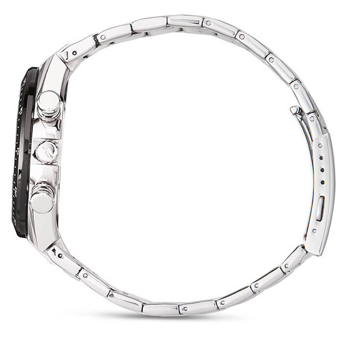Дерзкий автомобильный дизайн, обтекаемые формы, строгие линии никого не оставят равнодушным. Эксклюзивной деталью стал циферблат с шахматным узором, поверхность которого выполнена из карбона. Модель способна получать энергию от солнечного света, она основана на технологии . Следить за состоянием заряда аккумулятора можно благодаря наличию специального индикатора. Противоударный корпусУдаропрочный корпусМеханизм заключён в корпус, выполненный из современных материалов, устойчивых к ударам, механическим повреждениям и падению с высоты: инновационный пластик, карбон, нержавеющая сталь, титан. и браслет сделаны из стали 316L, долговечный материал устойчив к коррозии. Точность хода кварцевого японского механизма составляет +/- 20 секунд в месяц. БезельБезельВнешний ободок, закрепляющий стекло. В спортивных часах так называется поворотное кольцо с делениями на циферблате, выполняет роль таймера – замеряет отрезки времени на шкале. Неподвижный безель – элемент декора. Однонаправленно вращающийся безель на дайверских часах позволяет фиксировать моменты погружения и выныривания на поверхность. с IP-покрытиемIP-покрытиеМетод ионного напыления. Демонстрирует повышенную устойчивость к истиранию, окислению и химическим веществам. Под воздействием высокого давления и температуры около 1500°C молекулы металла надёжно соединяются с частицами корпуса часов.. Сапфировое стекло. Закручивающаяся задняя крышка. Подсветка NeobriteПодсветка NeobriteИспользование светонакопительных составов на основе сульфида цинка или алюмината стронция, яркий свет можно наблюдать на протяжении 6-10 часов после «зарядки» часов около источника света.. Водонепроницаемость 10 бар. Секундомер, календарь. Габариты: 50 x 47,5 x 12,7 мм.