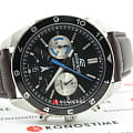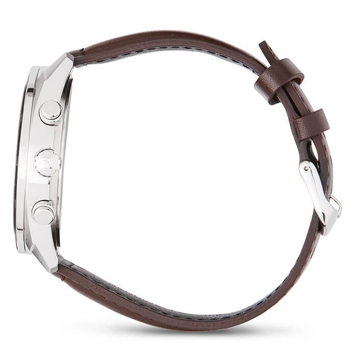 Лаконичный чёрный циферблат с оригинальным узором счётчиков имеет яркие голубые акценты в виде секундной стрелки и элементе миниатюрного окошка на позиции 9 часов. Крупные стрелки обладают люминесцентным покрытиемЛюминесцентное покрытиеПозволяет считывать показания времени в темноте. Производители наносят на стрелки, часовые индексы, безель или поверхность циферблата светонакопительный состав, дающий холодное свечение., позволяющим без затруднений использовать часы в темноте. Ремешок из натуральной кожи надёжно обхватывает запястье, привнося в образ красоту и стиль. Минеральное стекло. Отображение текущего числа. Габариты: 50,6 x 44 x 11,2 мм.