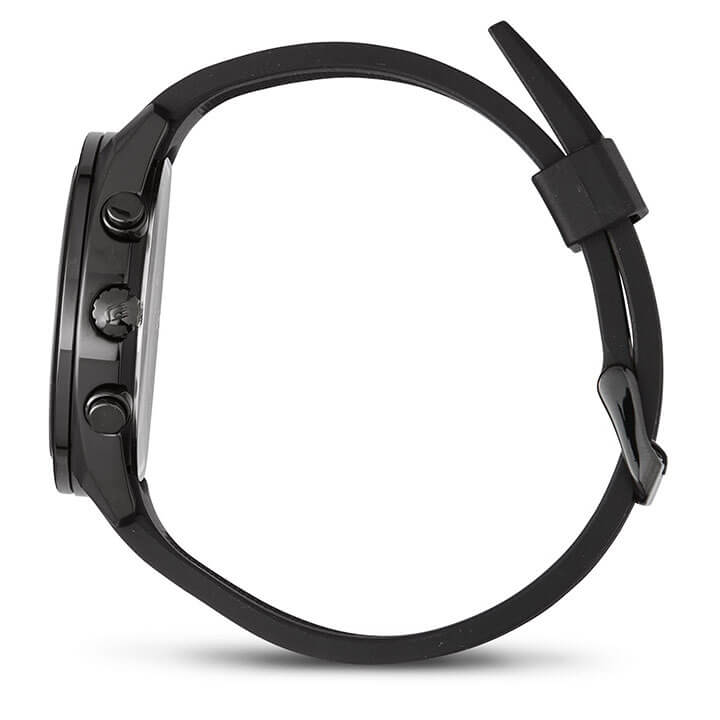 Лаконичный чёрный циферблат с оригинальным узором счётчиков имеет яркие красные акценты в виде секундной стрелки и элементе миниатюрного окошка на позиции 9 часов. Крупные стрелки обладают люминесцентным покрытиемЛюминесцентное покрытиеПозволяет считывать показания времени в темноте. Производители наносят на стрелки, часовые индексы, безель или поверхность циферблата светонакопительный состав, дающий холодное свечение., позволяющим без затруднений использовать часы в темноте. Ремешок из полимерного материала надёжно обхватывает запястье, отличается гибкостью и неприхотливостью в уходе. Минеральное стекло. Отображение текущего числа. Габариты: 50,6 x 44 x 11,2 мм.
