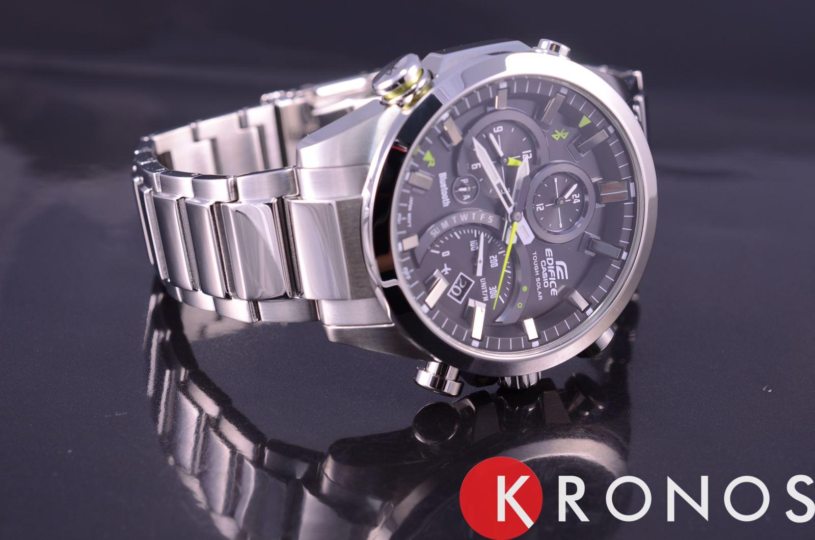 Мужские наручные часы Casio Edifice надежные и практичные. Солнечная подзаряжающаяся батарейка обеспечивает питание часов для работы. Часы оснащены функциями: Авиарежим (режим оффлайн). Часы переключаются в режим оффлайн нажатием кнопки. С помощью этой функции можно отключить радио- и GPS-приемник на время перелета. Функция поиска телефона. Не помните, куда положили смартфон. При нажатии кнопки на ваших часах смартфон подает звуковой сигнал. Индикатор электронной почты. На циферблате символически отображается наличие новых сообщений электронной почты. Функция мирового времени. Отображение текущего времени в основных городах и конкретных областях по всему миру.