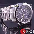 Функция секундомера- 1/20 сек. - 1 час. Прошедшее время измеряется с точностью в 1/20 секунды. Пределы измерения достигают 1 часа. 5 ежедневных будильников. Будильник напомнит Вам о повторяющихся событиях с помощью звукового сигнала, установленного Вами на определенное время. Вы также можете активировать почасовой сигнал времени, сообщающий о каждом полном часе. Автоматический календарь. Корпус и браслет выполнены из нержавеющей стали. Минеральное стекло устойчиво к появлению царапин. Водонепроницаемость 100М. В часах можно плавать.