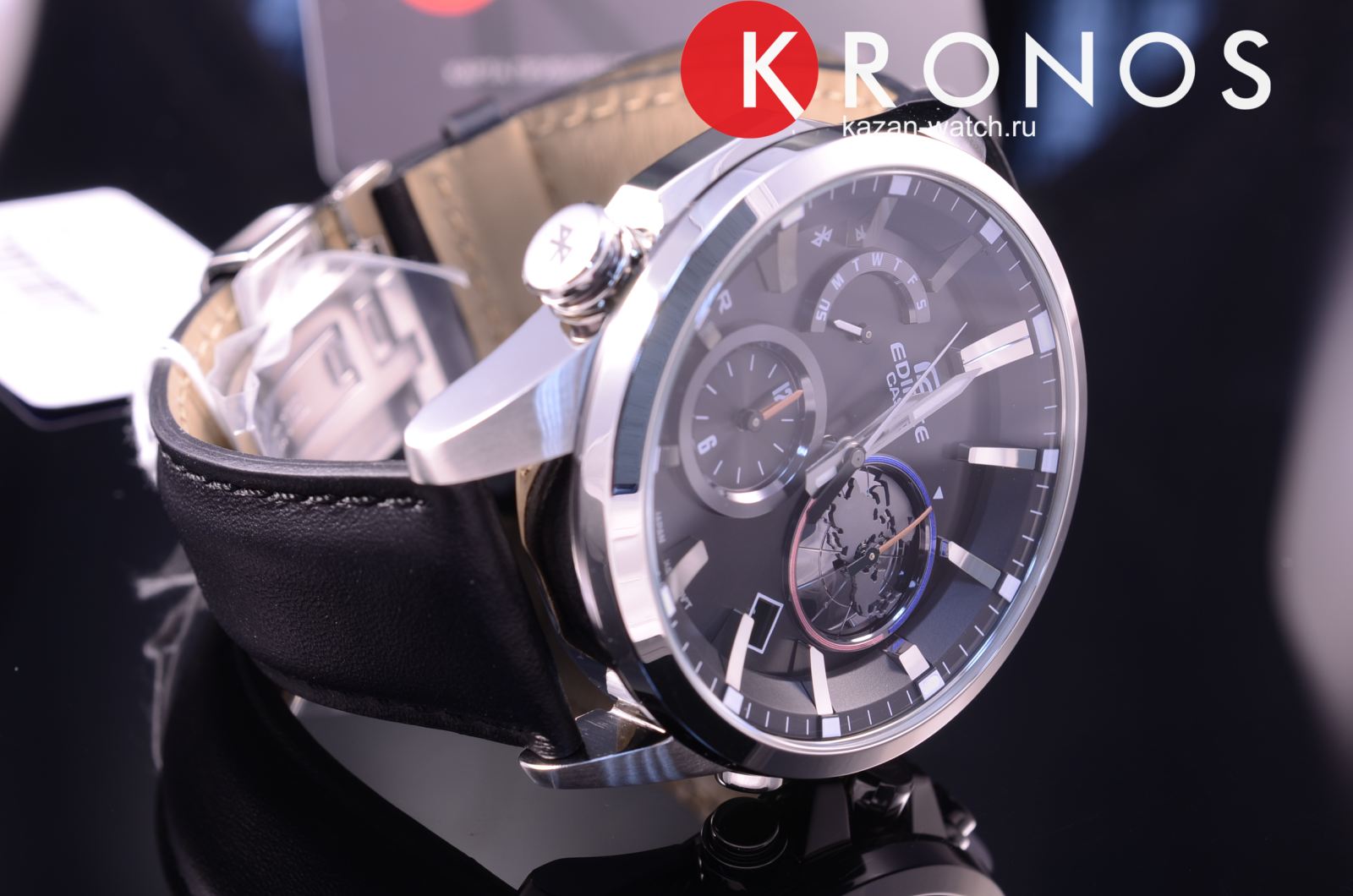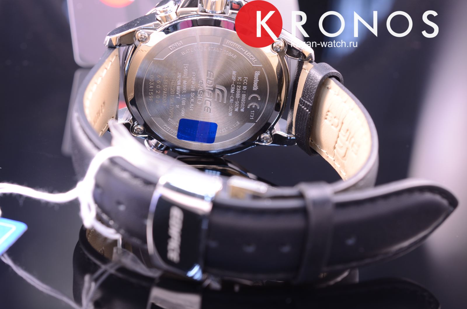 Edifice Smartphone Link. Питание от солнечной энергии Tough Solar - солнечные батарейки большой мощности, индикатор низкого заряда батареи. Функция автоматического сохранения энергии. Время работы аккумулятора без подзарядки приблизительно 5 месяцев, при включенной функции сохранения энергии приблизительно 19 месяцев. Светонакопительное покрытие необрит продолжает светиться в темноте даже после непродолжительного пребывания на свету. Беспроводная технология Bluetooth® 4.0 со сверхнизким потреблением энергии для синхронизации со смартфоном. При подключении к смартфону часы корректируют текущее время, а также копируют настройки мирового времени. Мировое время – 300 городов. Функция включения/отключения летнего времени. Функция поиска телефона. Второй часовой пояс. Индикатор день/ночь. Ретроградный указатель дня недели. Завинчивающаяся заводная головка с защитой.