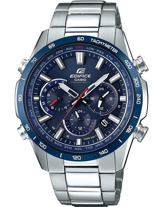 Очень строгие, очень солидные и очень мужские - совершенный микс внешнего вида и технологий. Питание от солнечной энергии Tough Solar - солнечные батарейки большой мощности, индикатор заряда батареи. Функция автоматического сохранения энергии. Время работы аккумулятора без подзарядки приблизительно 5 месяцев, при включенной функции сохранения энергии приблизительно 26 месяцев. Коррекция текущего времени радиосигналом на территории почти всей Европы, США, Японии и Китая. Мировое время – 48 городов (31 часовой пояс), всемирное координированное время (UTC). Функция включения/отключения летнего времени. Cекундомером с точностью показаний 1/20с и временем измерения 24x. Сплит-хронограф. Тахиметр. Ретроградный указатель дня недели. Раскладывающаяся застежка, расстегиваемая одним касанием.