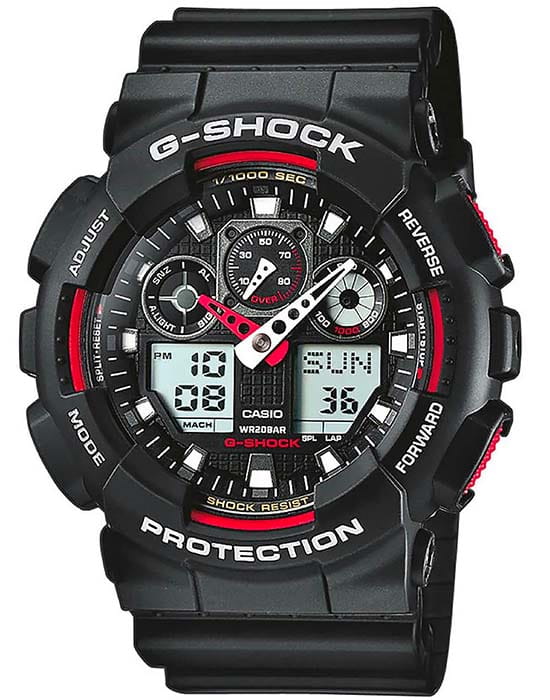Японские мужские часы-хронограф Casio G-Shock GA-100-1A4DR — это воплощение мощи и стиля в коллекции G-Shock. Прочное Минеральное стеклоМинеральное стеклоМинеральное стекло представляет собой искусственно выращенный минерал кварца. Такое стекло отличается особой устойчивостью к повреждениям и царапинам. Уступает по некоторым качествам сапфировому стеклу. с устойчивостью к царапинам обеспечивает идеальную прозрачность и защиту циферблата. УдаропрочныйУдаропрочный корпусМеханизм заключён в корпус, выполненный из современных материалов, устойчивых к ударам, механическим повреждениям и падению с высоты: инновационный пластик, карбон, нержавеющая сталь, титан. корпус оберегает механизм от повреждений и вибраций, гарантируя надёжность и долговечность.