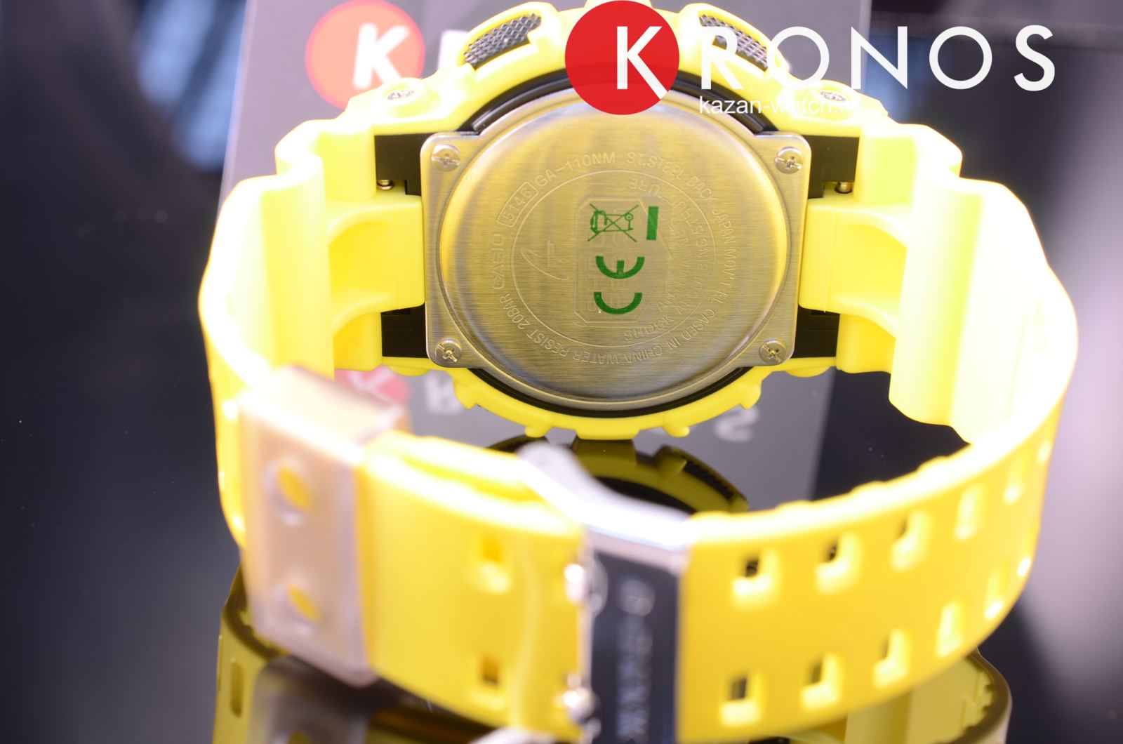 Casio GA-110NM-9A яркие современные часы в ударопрочном корпусе. Минеральное стекло, устойчивое к появлению царапин. Корпус и браслет часов выполнены из полимерного пластика яркого, гламурного желтого цвета. Часы GA-110NM-9A снабжены множеством дополнительных функций - секундомер, таймер обратного отсчета, календарь, термометр, компас, сверхмощная автоматическая LED-подсветка с автоматической регулируемой автоматизацией. Ежечасный сигнал, повтор сигнала будильника, мировое время. Водонепроницаемость часов до 200 метров. Магнитоустойчивые.  Элемент питания CR1220, точность хода +\- 15 сек.в месяц.