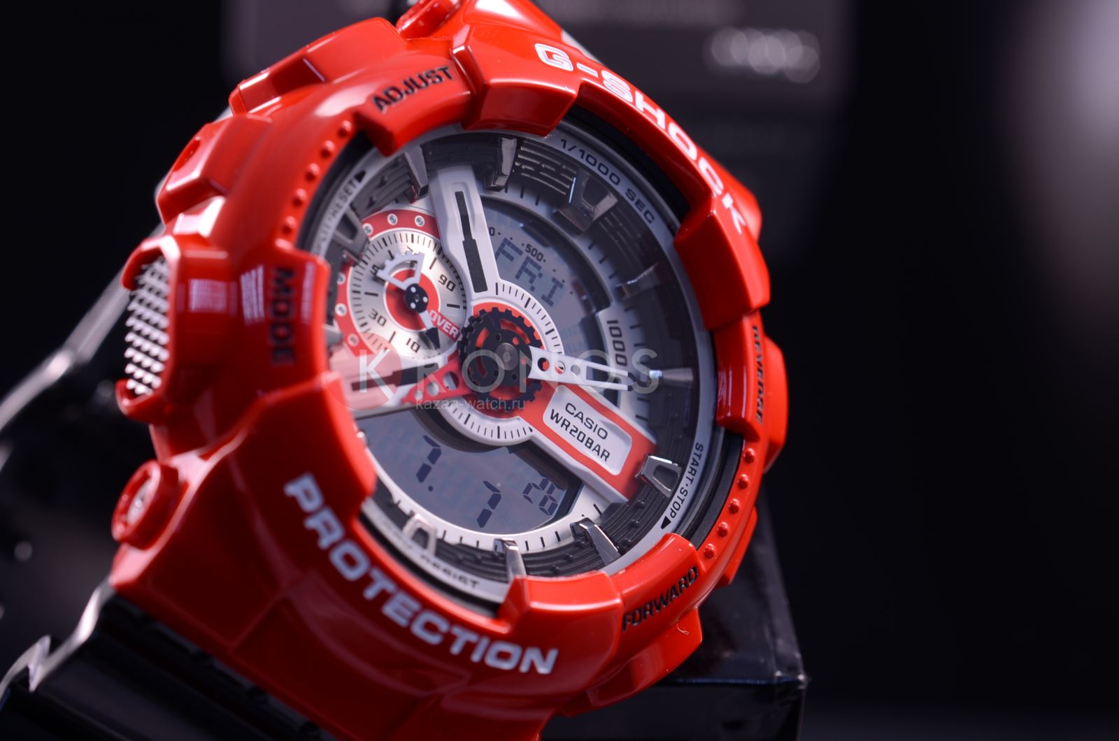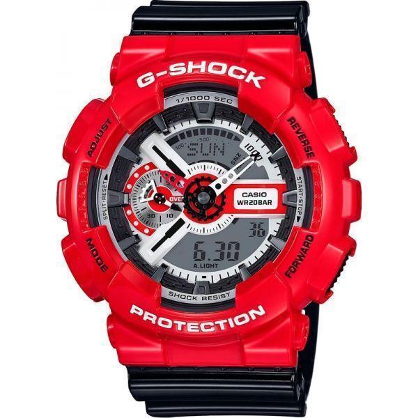 Casio GA-110CB-1A стильные мужские японские наручные часы. Корпус и браслет выполнены из полимерного пластика, вес часов всего 72 грамма. Строгость черного браслета разбавляется ярко-красными корпусом часов. Минеральное стекло, устойчивое к появлению царапин. Часы GA-110CB-1A снабжены множеством дополнительных функций - секундомер, таймер обратного отсчета, календарь, полностью автоматическая подсветка с автоматической регулируемой автоматизацией. Ежечасный сигнал, повтор сигнала будильника, мировое время. Водонепроницаемость часов до 200 метров (возможны занятия дайвингом). Ударопрочные и магнитоустойчивые.