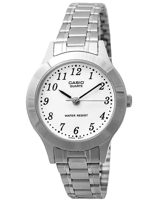 Стильные, серебристые часы выполнены в стиле минимализма, и одновременно сочетают в себе скромность и изысканность. Аксессуар имеет белый циферблат, на котором изображены черные, арабские цифры. Точность работы часов обеспечивается кварцевым механизмом, а 1 батарея будет служить в течение 3-х лет. Корпус часов сделан из гипоаллергенной латуни. Циферблат модели LTP-1128PA-7B защищен с помощью минерального стекла. Браслет сделан из нержавеющей стали 316L и содержит в себе складную застежку. Габариты: 33 x 27 x 7 мм.
