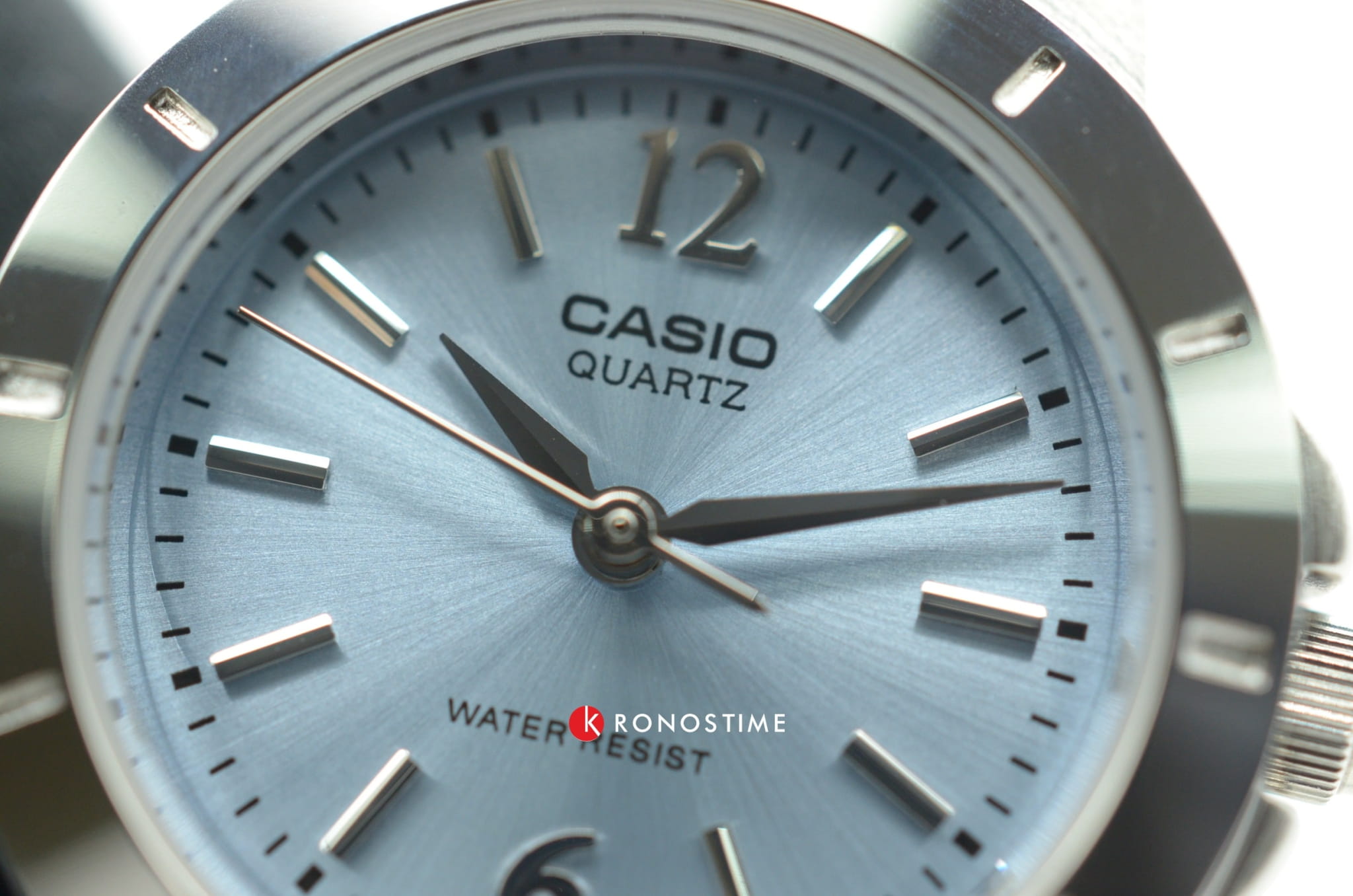Данная модель непременно завоюет благосклонность своей практичностью в носке и стильным дизайном. Круглый циферблат часов выдержан в светло-голубом цвете и мягко отражает падающий свет. Оригинальный дизайн временных отметок сочетает в себе арабские цифры и штрихи. Корпус из гипоаллергенной латуни обрамляет защитное, минеральное стекло. Серебристый, удобный браслет выполнен из нержавеющей стали. Данная модель часов от японской марки Casio станет элегантным и незаменимым аксессуаром для своей обладательницы.