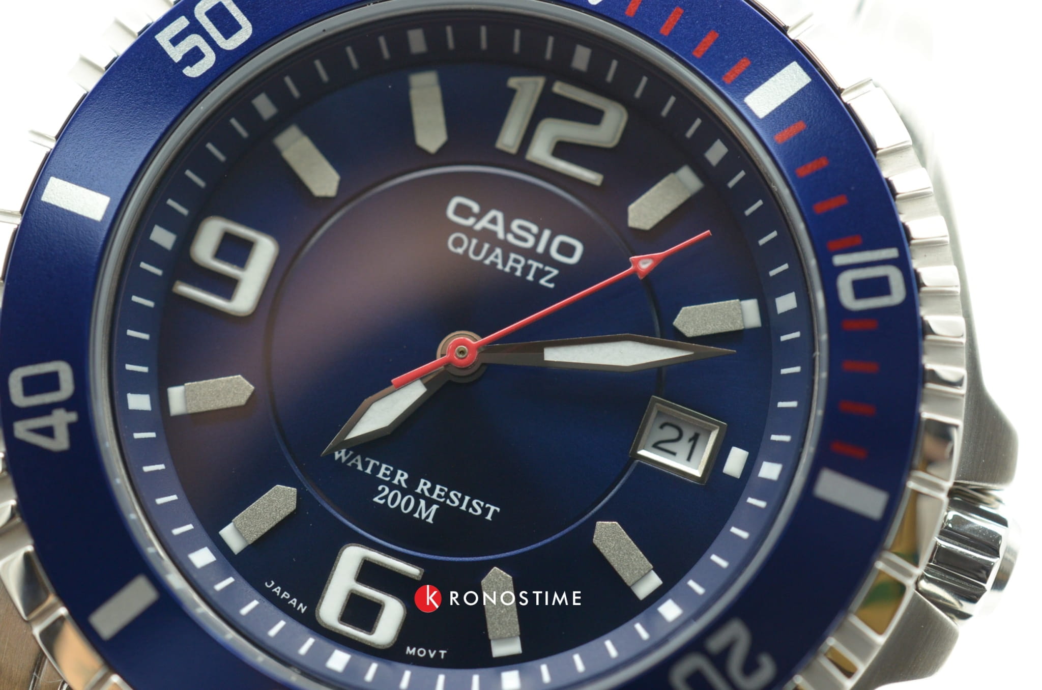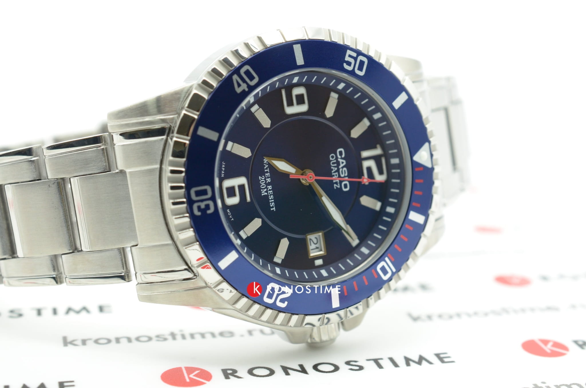 Синий циферблат имеет крупную индикацию времени, что позволяет увидеть показания даже при мимолётном взгляде на циферблат. Оформление выдержано в дайверской тематике, обратите внимание на однонаправленно вращающийся безельБезельВнешний ободок, закрепляющий стекло. В спортивных часах так называется поворотное кольцо с делениями на циферблате, выполняет роль таймера – замеряет отрезки времени на шкале. Неподвижный безель – элемент декора. Однонаправленно вращающийся безель на дайверских часах позволяет фиксировать моменты погружения и выныривания на поверхность. и высокую степень водозащиты WR 200. Кварцевый японский механизм. Срок службы батарейки составляет 10 лет. Надёжное минеральное стекло. Стрелки и метки с люминесцентным покрытиемЛюминесцентное покрытиеПозволяет считывать показания времени в темноте. Производители наносят на стрелки, часовые индексы, безель или поверхность циферблата светонакопительный состав, дающий холодное свечение.. Корпус и браслет из износоустойчивой хирургической стали 316L. Апертура даты. Габариты: 48 x 42,6 x 11,5 мм.