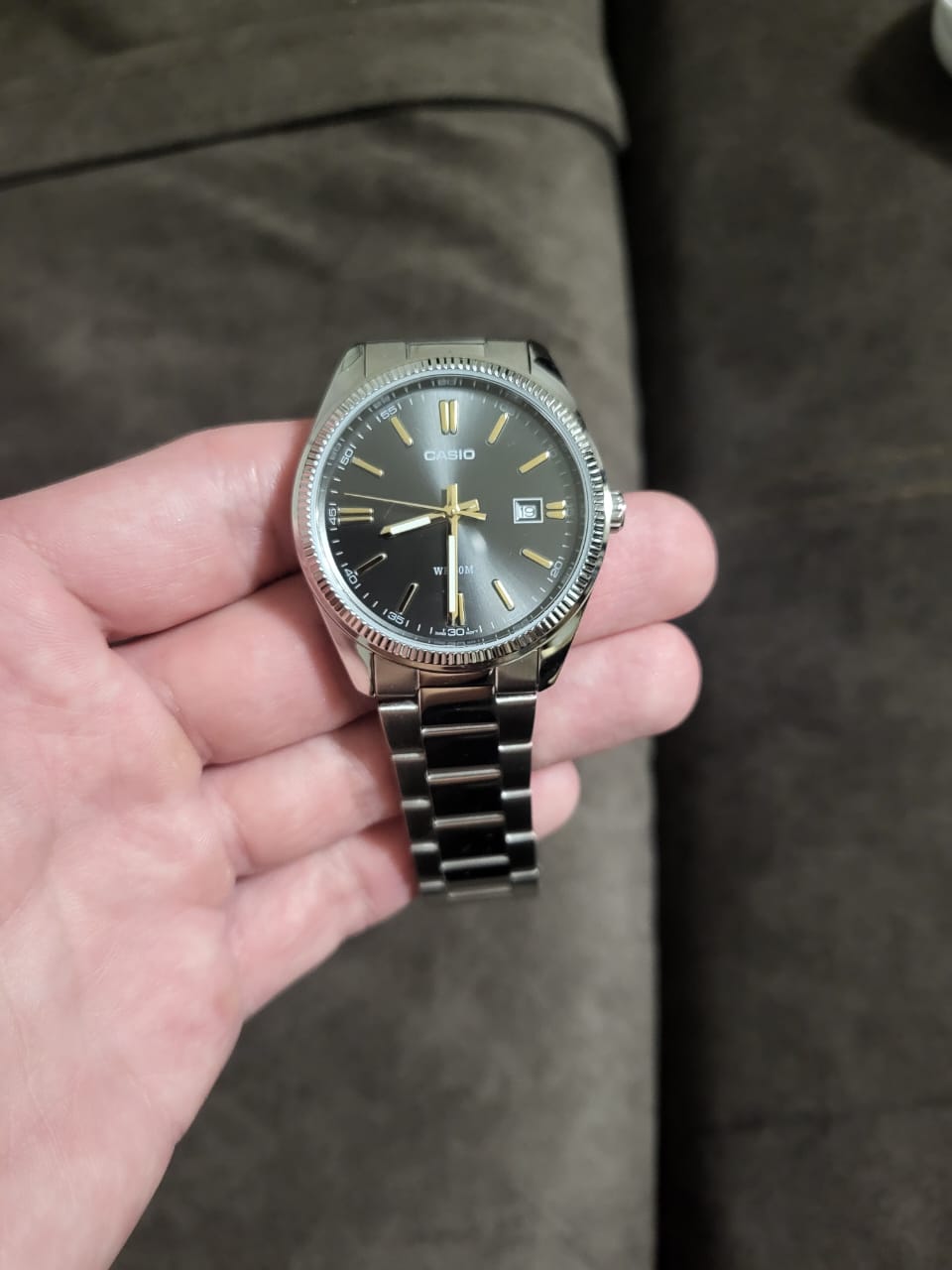 Удобный размер циферблата, красивое оформление цифр, наличие указателя даты