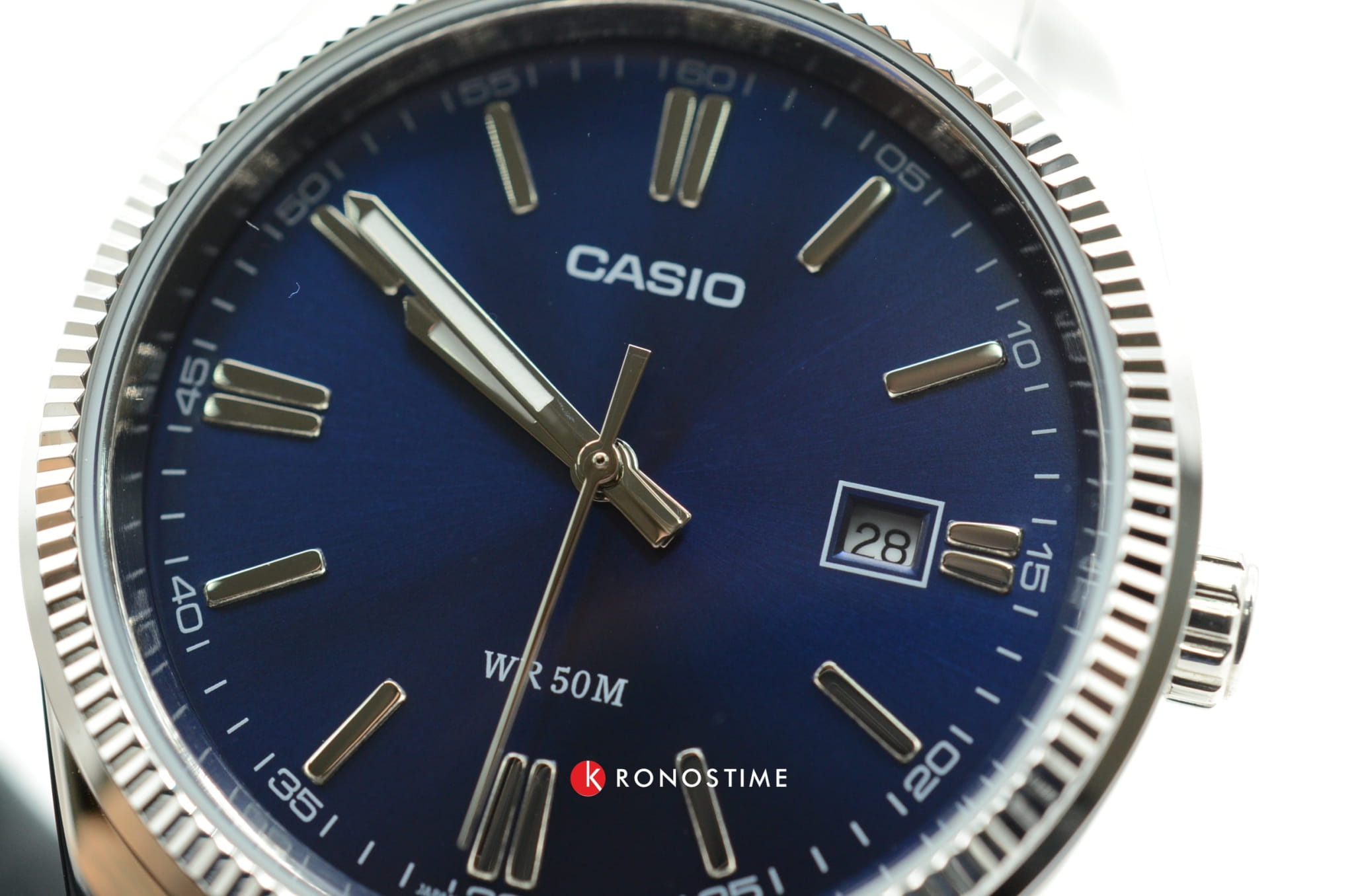 Модные часы от Casio в повседневном стиле способны покорить сердца любителей качества и комфорта. Прочный браслет из гипоаллергенной латуни надежно закреплен со стальным браслетом. Благодаря раскладывающейся застежке, вероятность потери аксессуара очень мала. Фактурный безельБезельВнешний ободок, закрепляющий стекло. В спортивных часах так называется поворотное кольцо с делениями на циферблате, выполняет роль таймера – замеряет отрезки времени на шкале. Неподвижный безель – элемент декора. Однонаправленно вращающийся безель на дайверских часах позволяет фиксировать моменты погружения и выныривания на поверхность. добавляет аксессуару привлекательности. На эффектном циферблате насыщенно-синего цвета расположены временные отметки в виде серебристых штрихов. Миниатюрный календарь в угловой рамке уведомляет о текущей дате. Подсветка NeobriteПодсветка NeobriteИспользование светонакопительных составов на основе сульфида цинка или алюмината стронция, яркий свет можно наблюдать на протяжении 6-10 часов после «зарядки» часов около источника света. позволяет определять время в темное время суток. Минеральное стекло. Водонепроницаемость составляет 50 WR. Кварцевый тип механизма. Срок службы батарейки равен 3 годам.