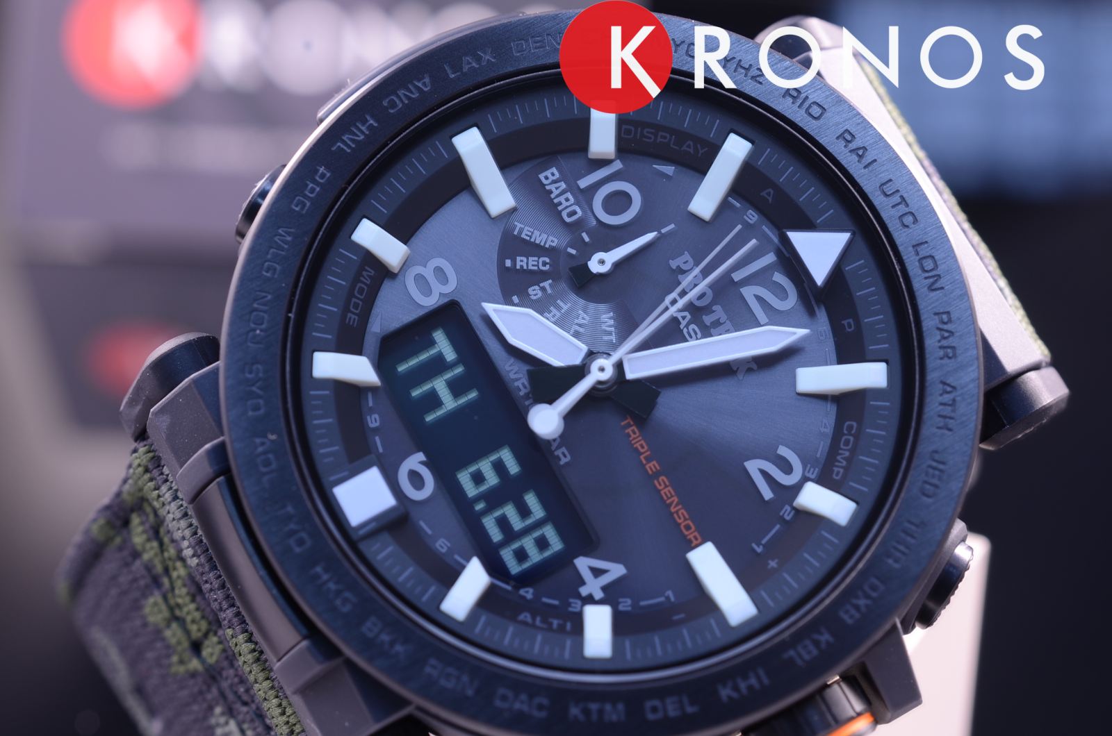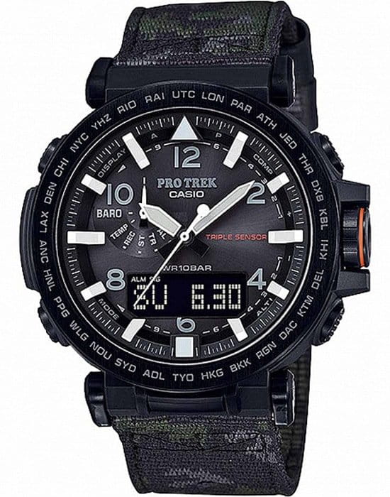 Брендовый аксессуар включает в себя множество дополнительных функций, без которых не обойтись любителям приключений. Среди них высотомер, барометр, высокоточный термометр -10°C /+60°C, встроенный компас, хронографХронографФункция позволяет измерять отрезки времени с особой точностью: часы, минуты, секунды. Верным признаком хронографа является наличие на циферблате 3 дополнительных окошек-счётчиков., таймер, будильник, автоматический календарь, мировое времяМировое время Полезное часовое усложнение, отображающее время в основных городах и известных областях по всему миру, оно связано с часовыми поясами, удобно для путешественников и бизнесменов. – 29 часовых поясов, UTCUTCВсемирное кординационное время, не имеющее привязки к географическому положению Гринвича, основывается на атомном отсчёте времени. Регулировка времени осуществляется более точно, чем устаревшее GMT.